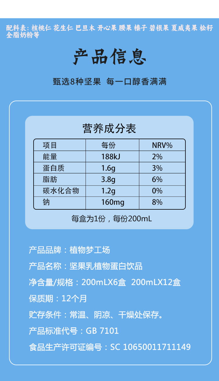 植物梦工场【一口喝下8种坚果】,坚果乳200ml*12瓶