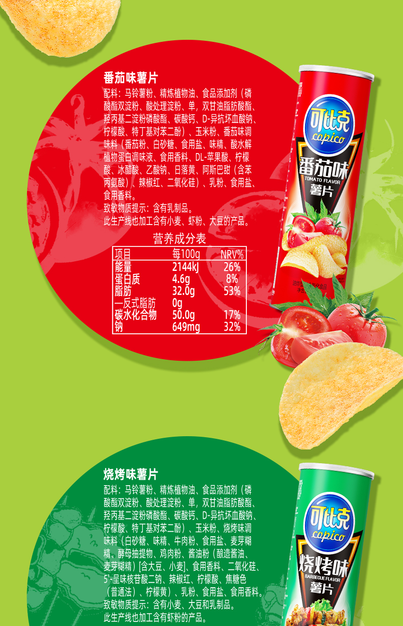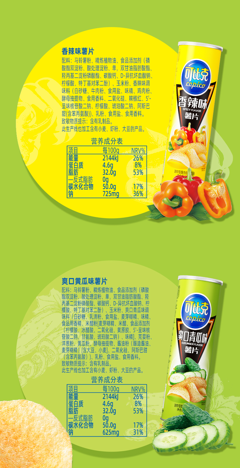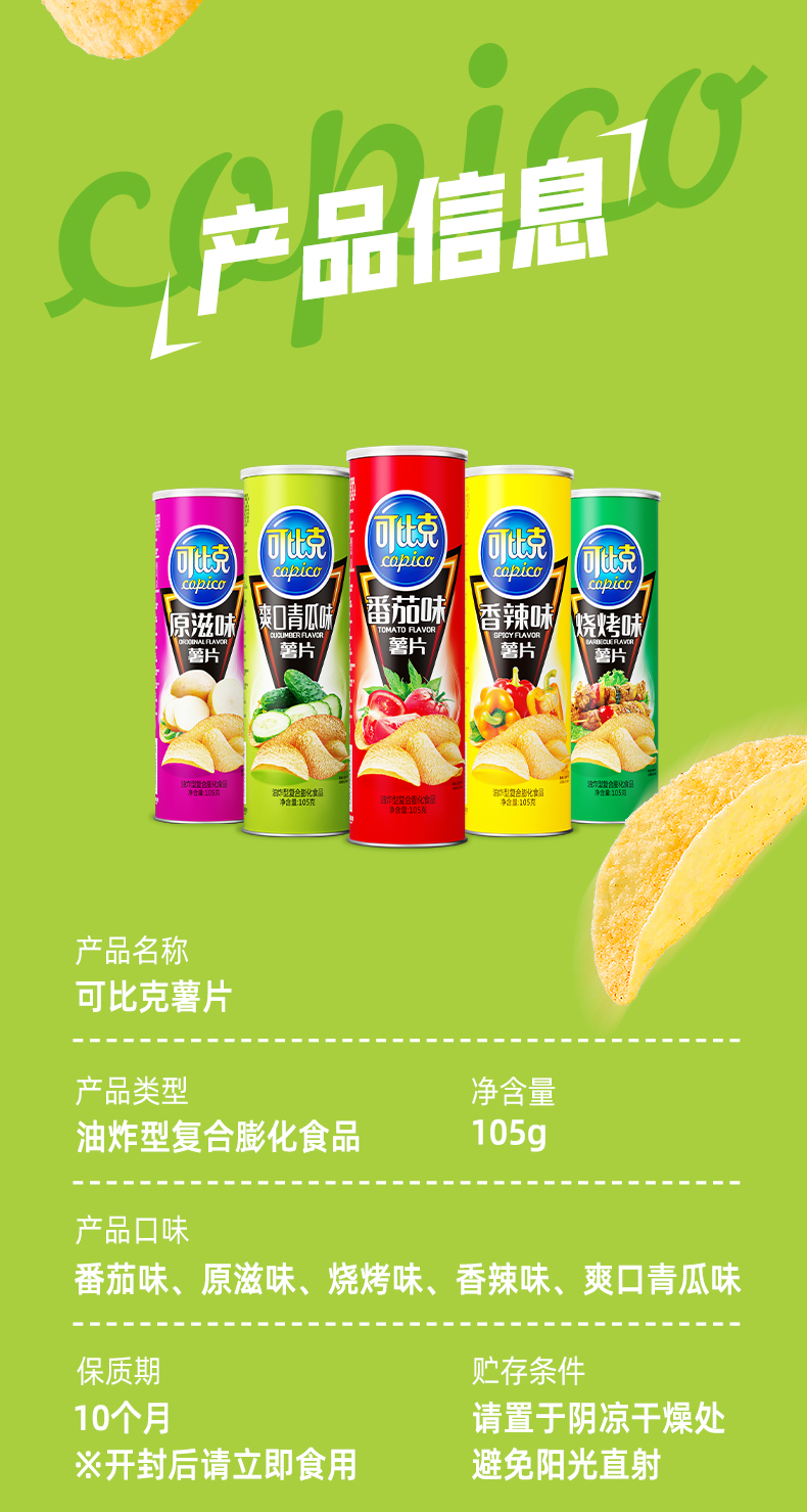【囤货】可比克薯片三连罐105g×3罐解馋零食宿舍办公追剧下午茶酥脆