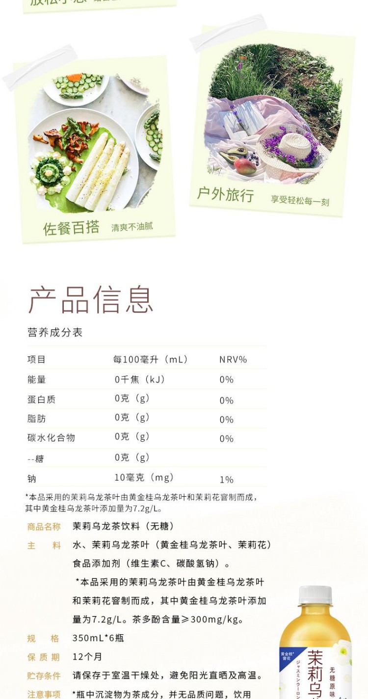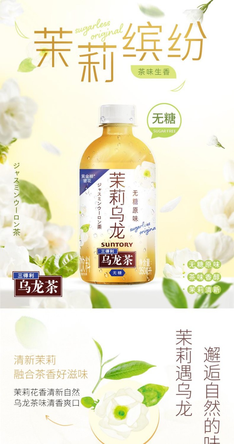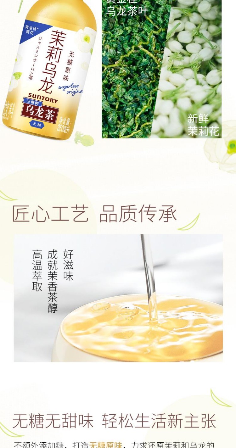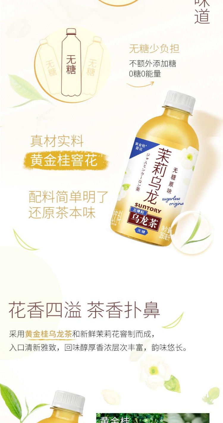 【代言人成毅同款】三得利乌龙茶茉莉乌龙0糖0脂夏日饮品350ml*6瓶