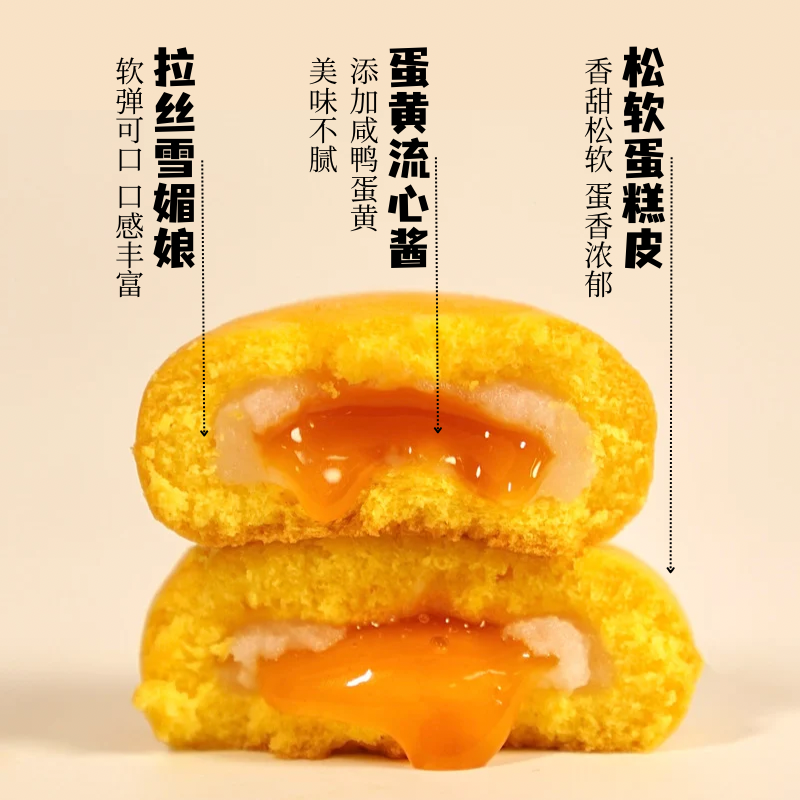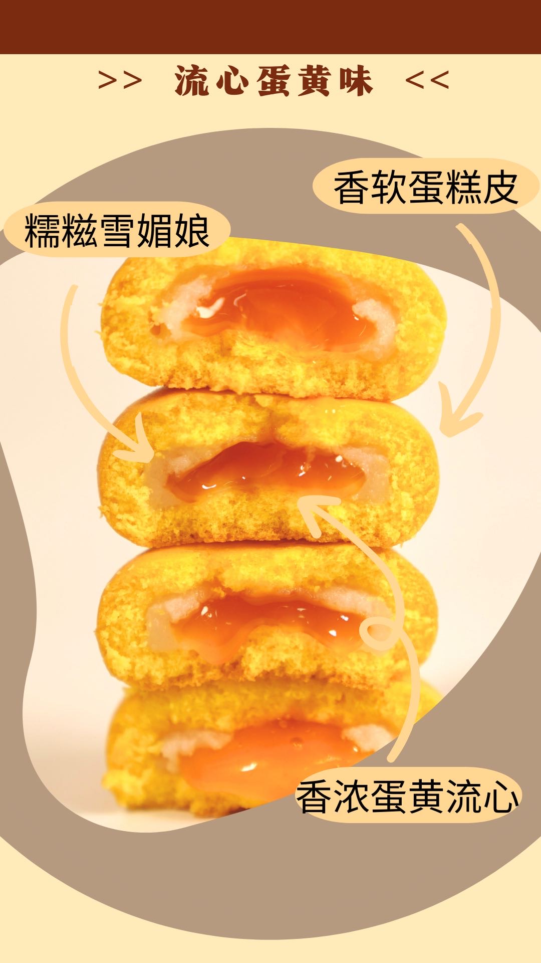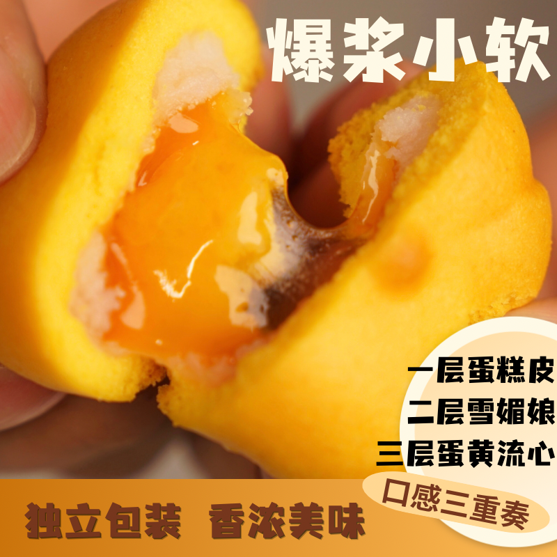 爆浆小软蛋糕雪媚娘夹心流心蛋黄味糕点软糯拉丝零食香软口袋零食