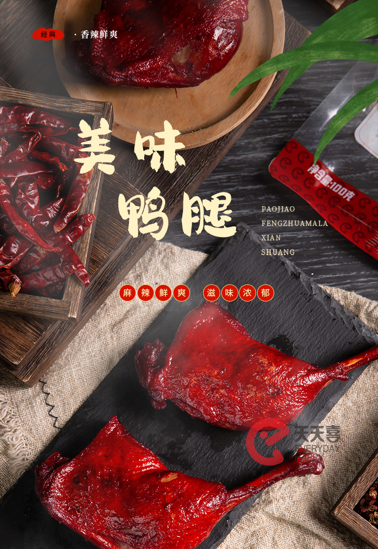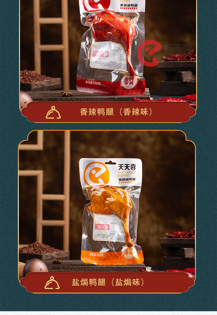 天天喜鸭腿*4烤脖*6好吃的零食香辣味工艺嚼劲即食熟食解馋卤味T