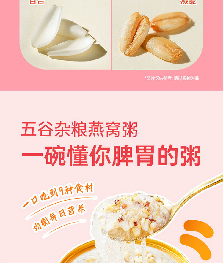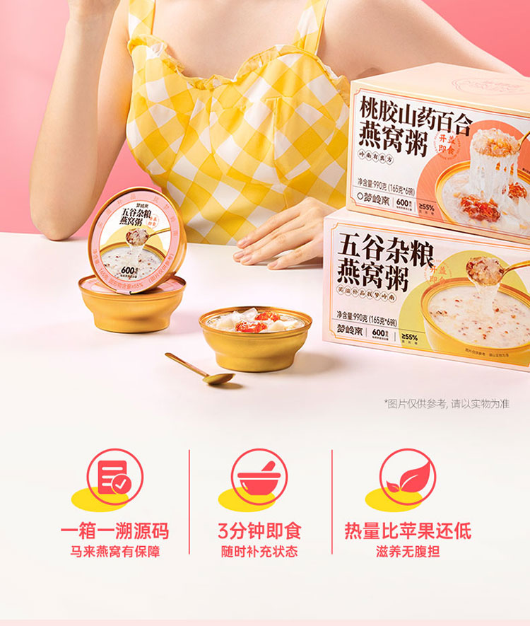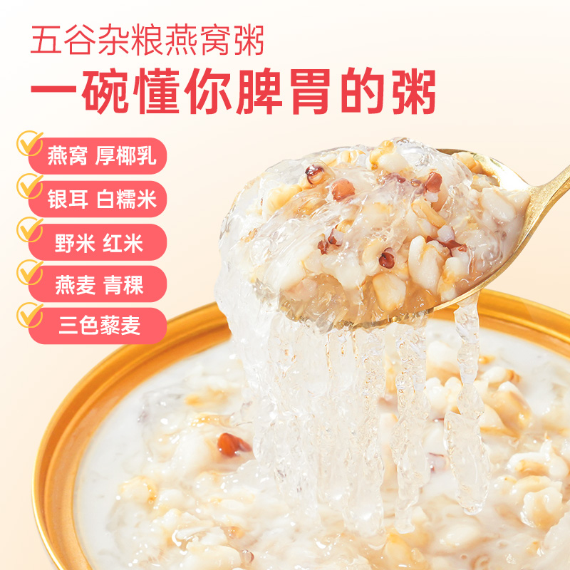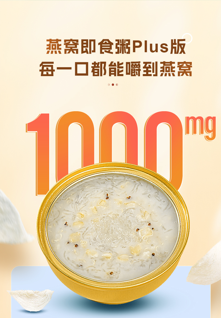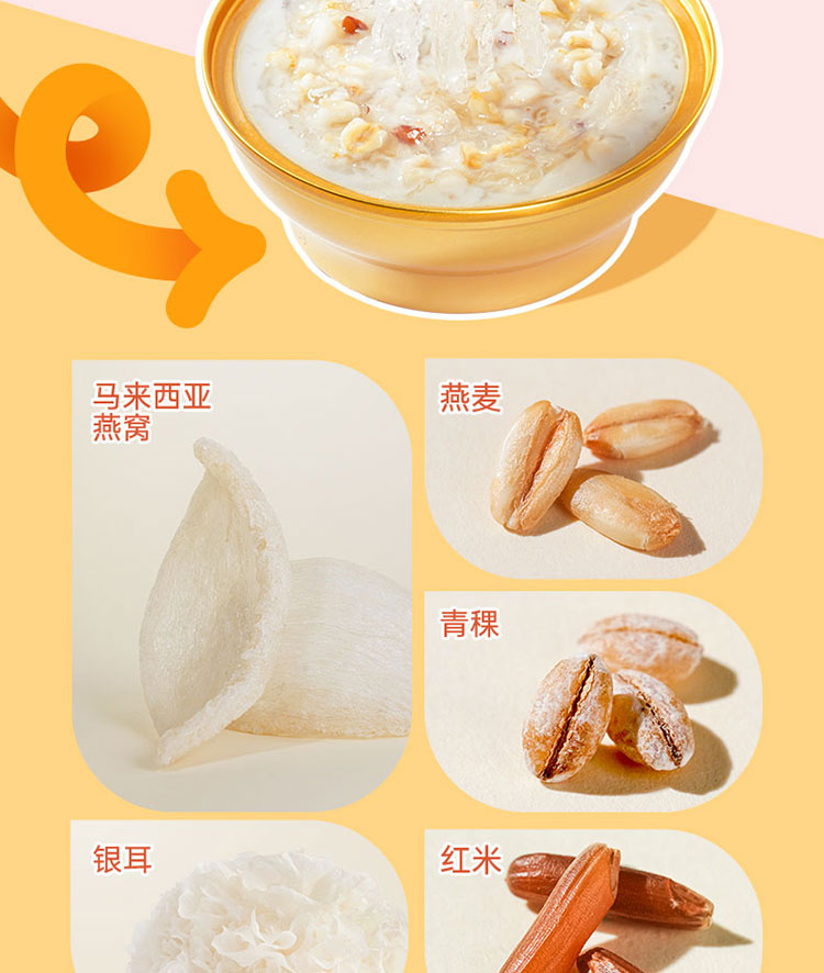 - ¥69.90【单箱尝鲜】五谷杂粮风味(600mg干燕窝/碗),165g*1碗(燕窝粥每箱6碗)