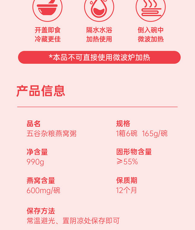 - ¥99.00【孕妇优选】五谷杂粮风味2箱(600mg干燕窝/碗),165g*1碗(燕窝粥每箱6碗)