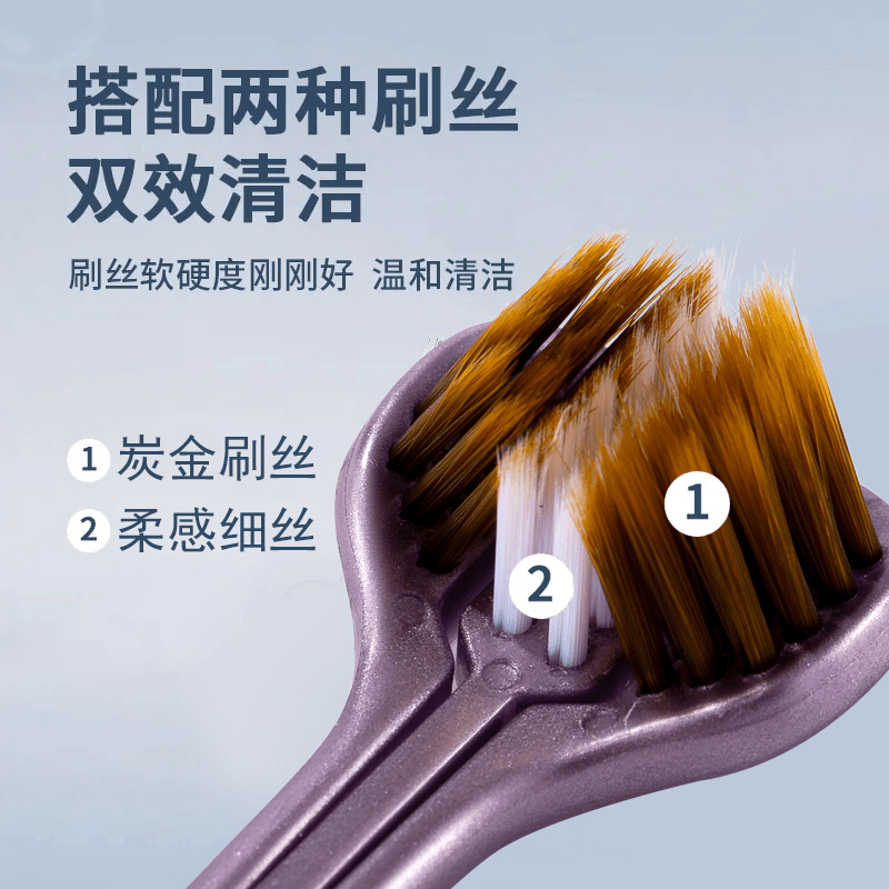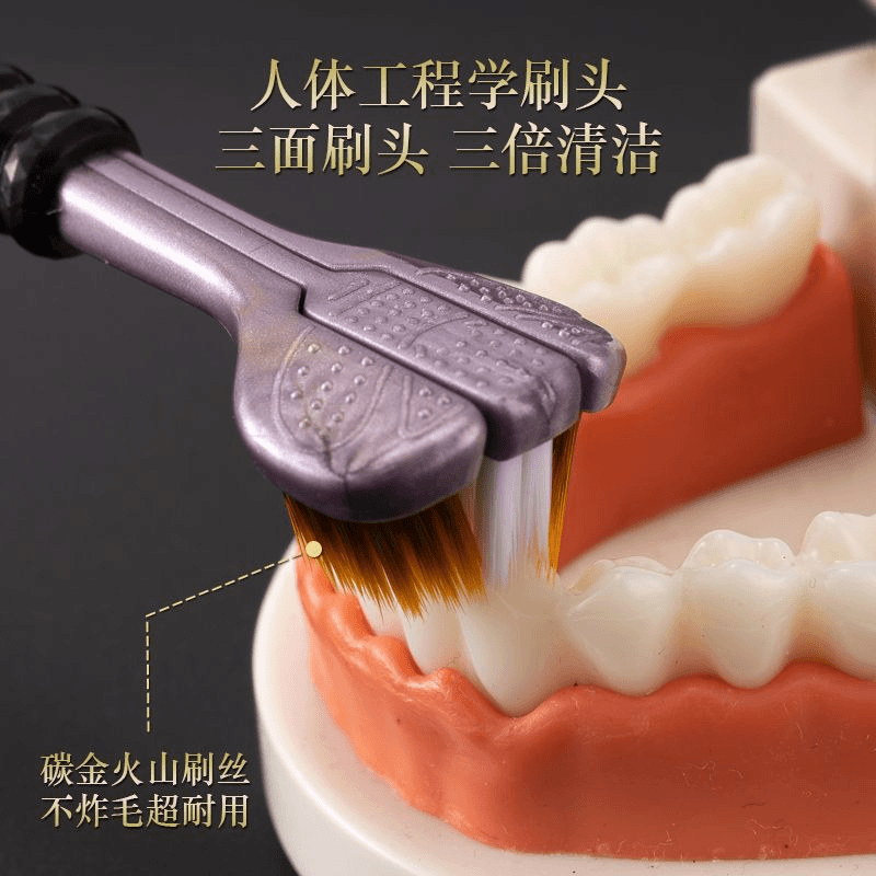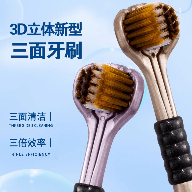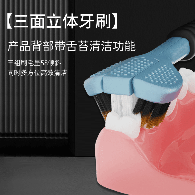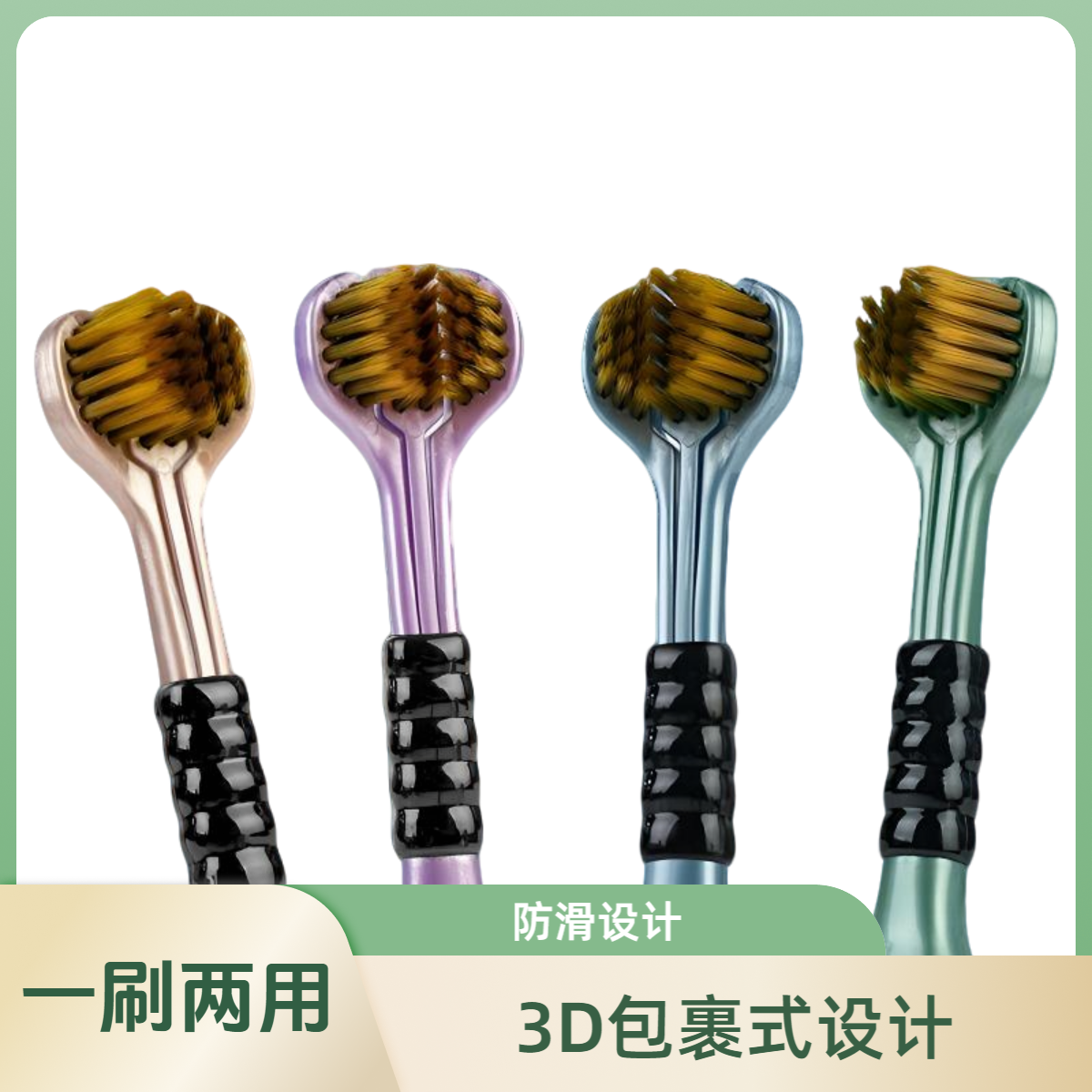3d碳金包裹式三面牙刷情侣软毛高档清洁舌苔家庭装牙刷