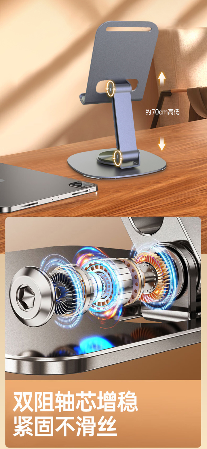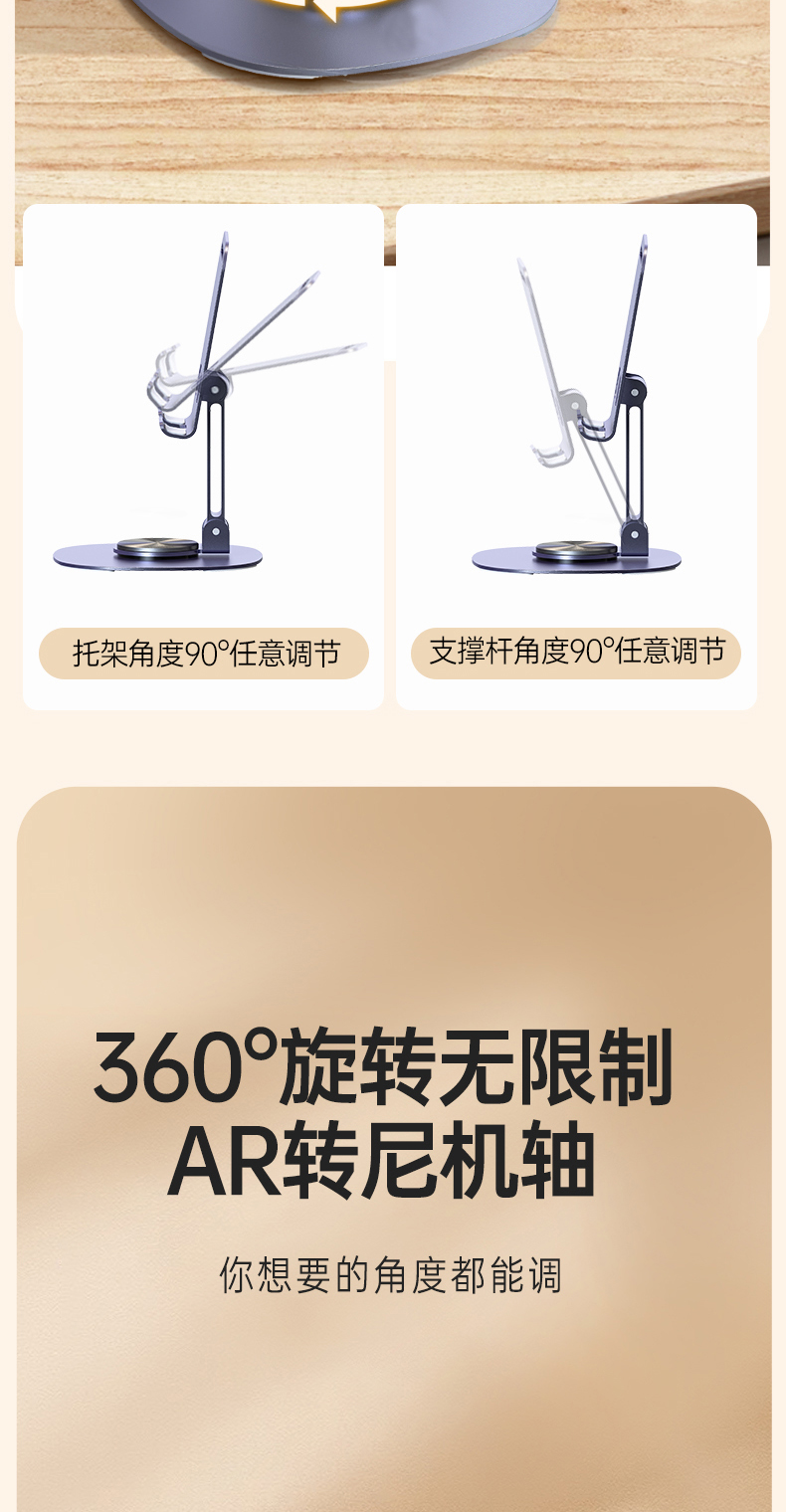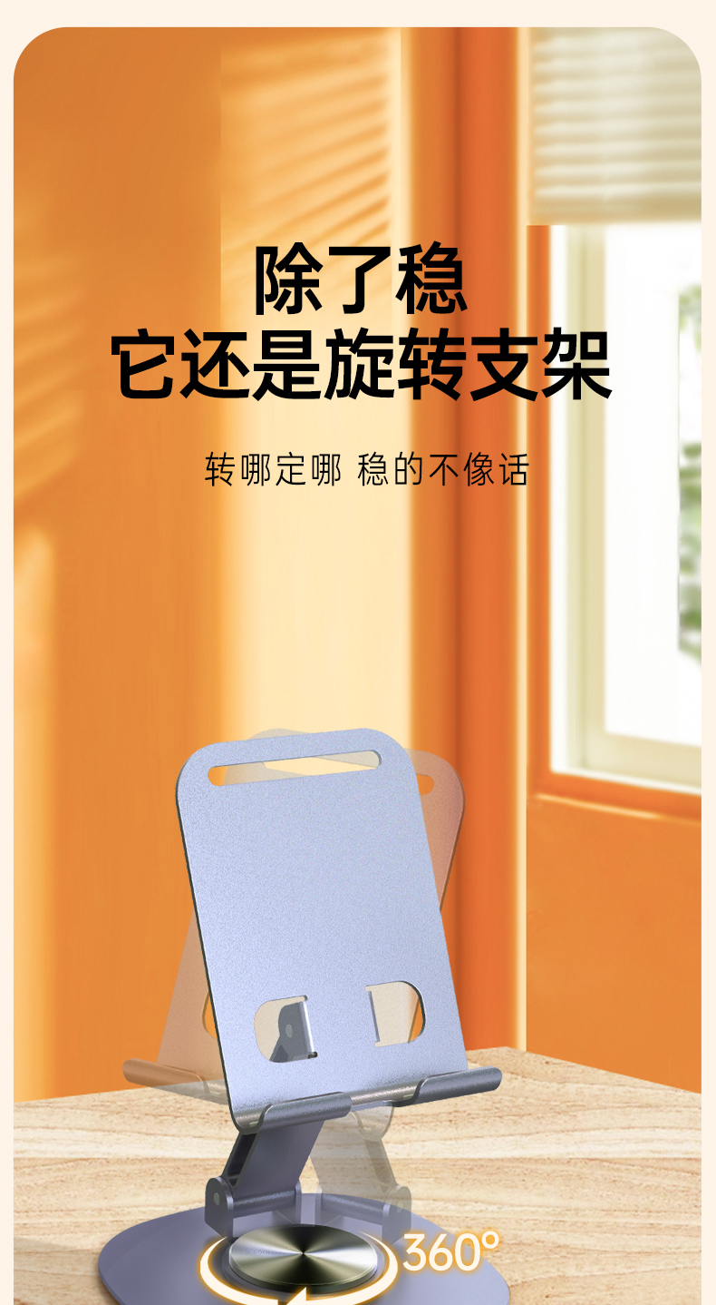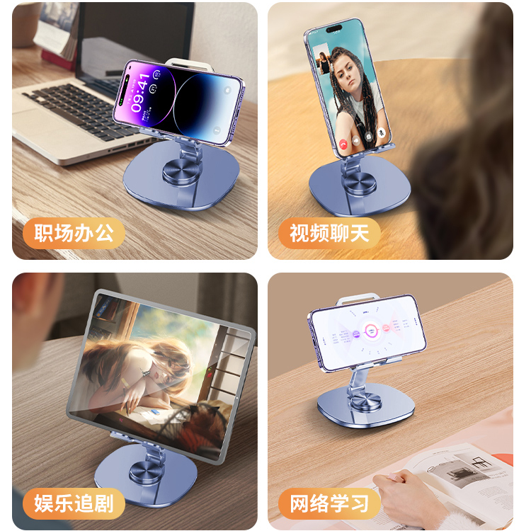 最让我惊喜的是它的360度旋转功能,无论是横屏追剧、竖屏直播,还是调节到任何一个舒适的角度视频会议,都能轻松实现,简直是懒人必备神器!而且,这个手机架不仅适用于手机,我的iPad和平板电脑也能稳稳地架在上面,兼容性超强。