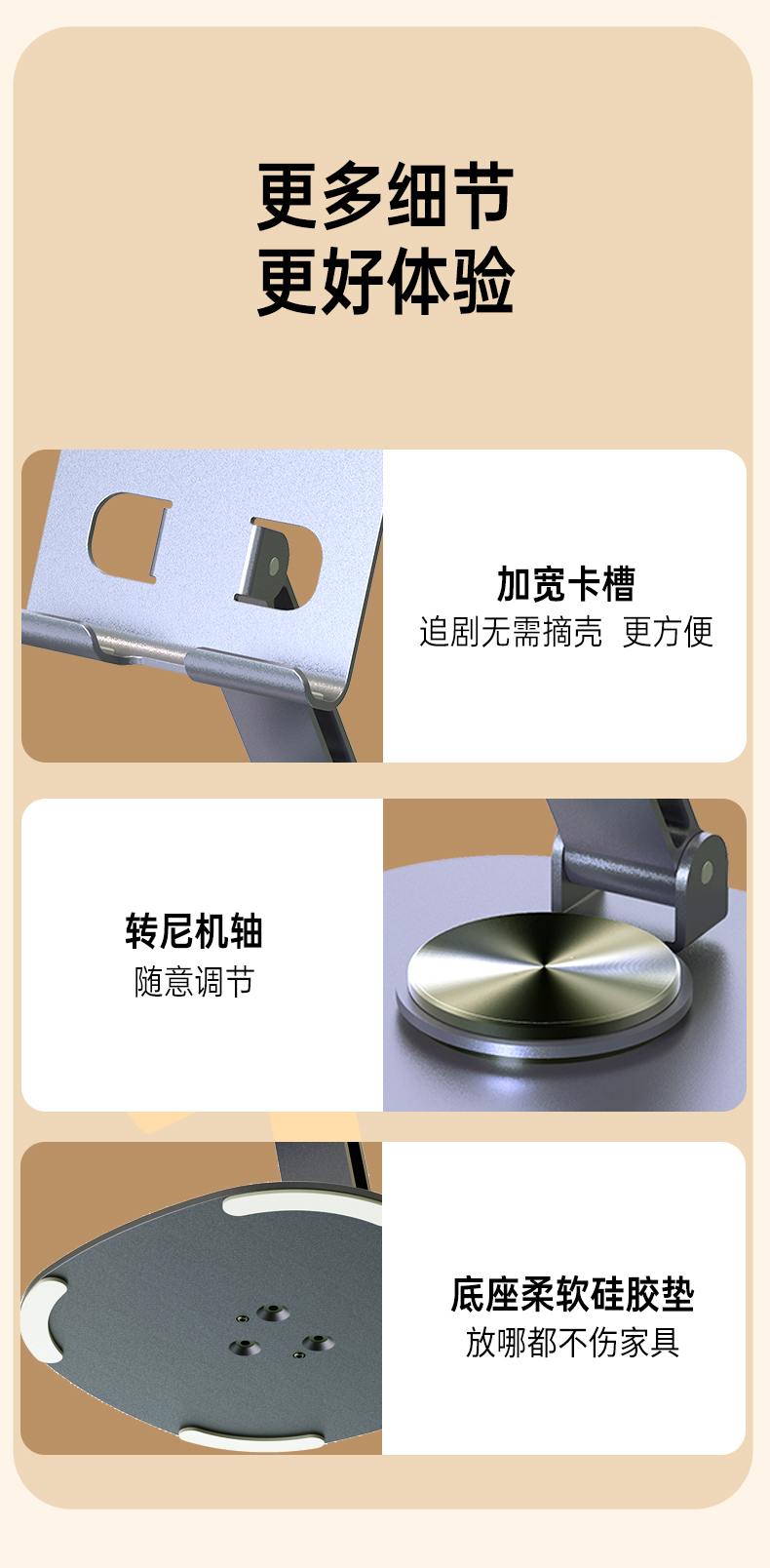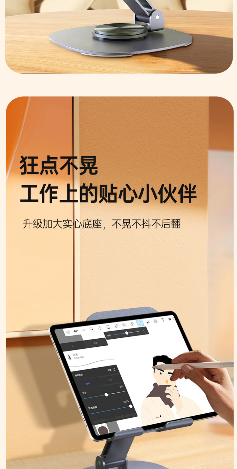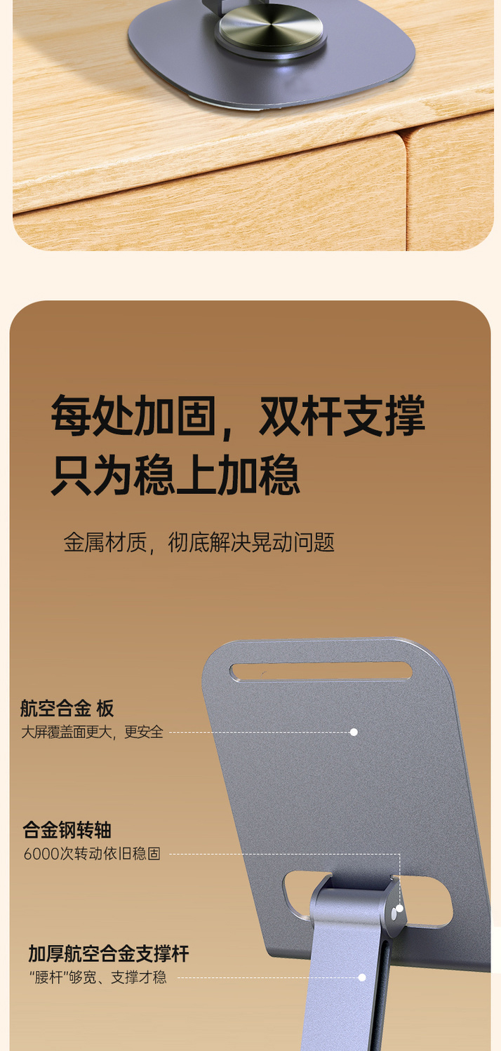 最让我惊喜的是它的360度旋转功能,无论是横屏追剧、竖屏直播,还是调节到任何一个舒适的角度视频会议,都能轻松实现,简直是懒人必备神器!而且,这个手机架不仅适用于手机,我的iPad和平板电脑也能稳稳地架在上面,兼容性超强。