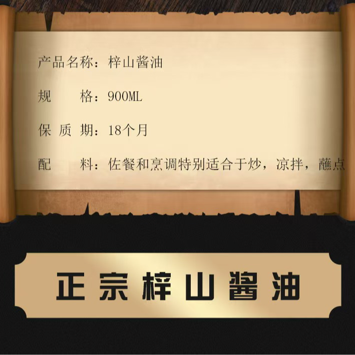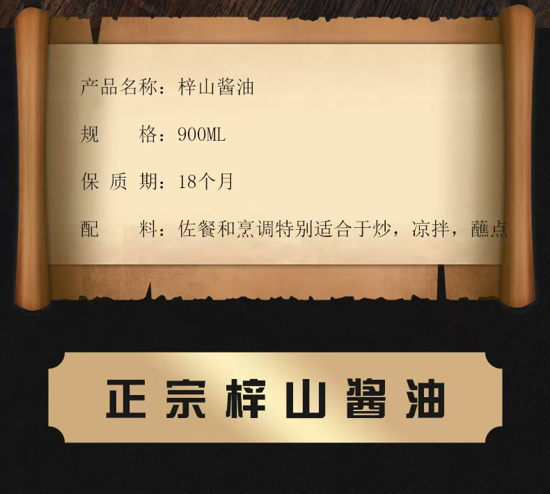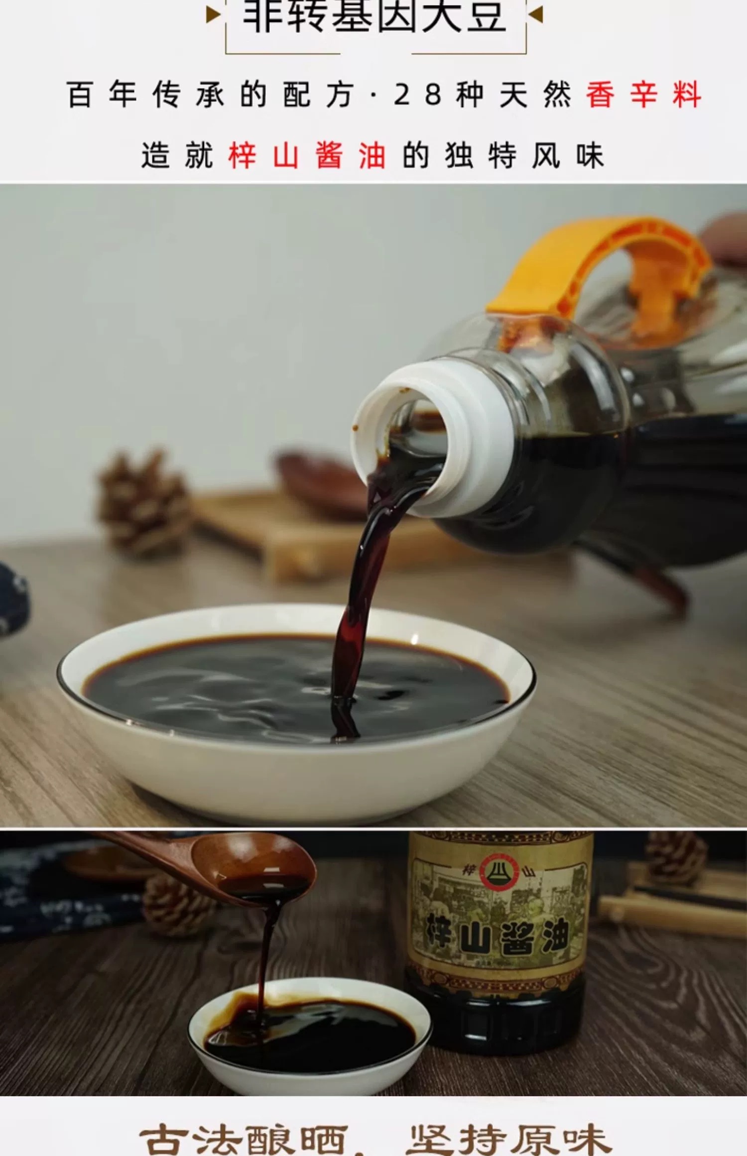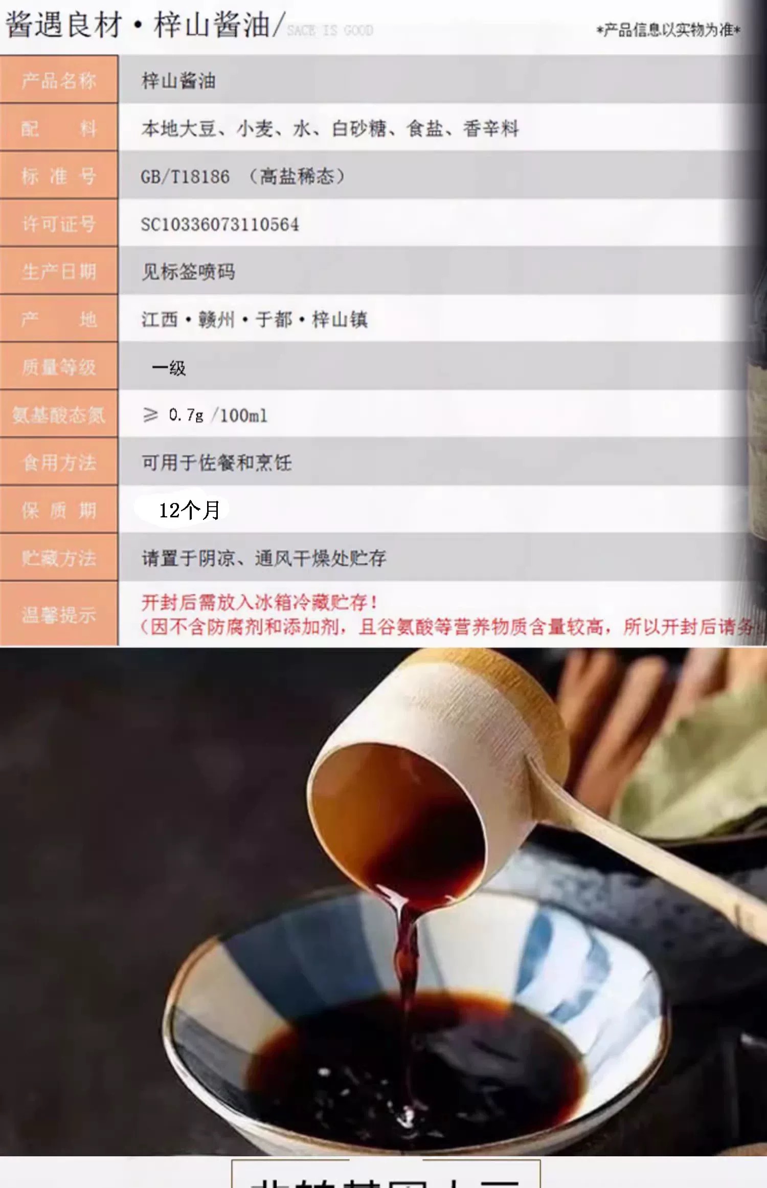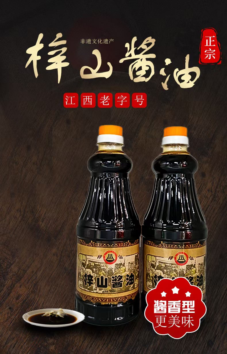 江西梓山酱油900ml瓶装于都传统手工纯酿造古法鲜香调味酱香浓郁