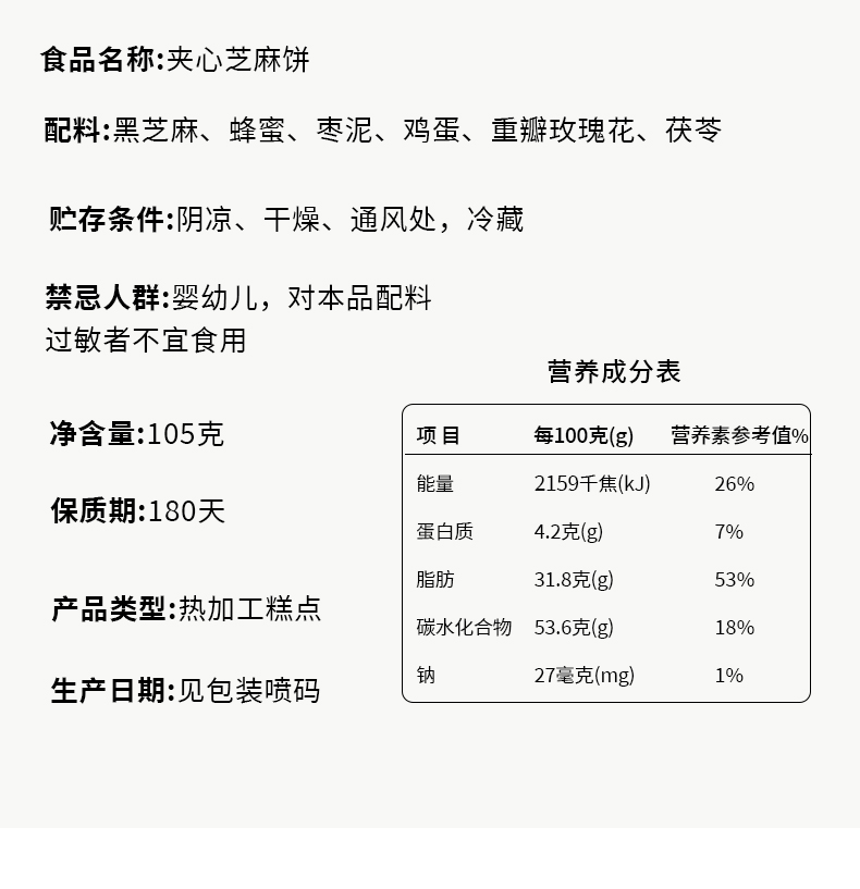- ¥19.80玫瑰夹心芝麻饼105g*1罐(尝鲜装)