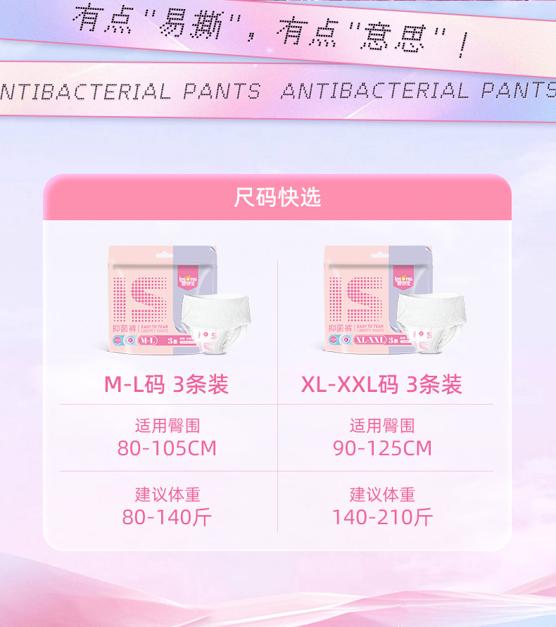 - ¥19.90便携装【XL-XXL码 】3片*3包(建议140-210斤)