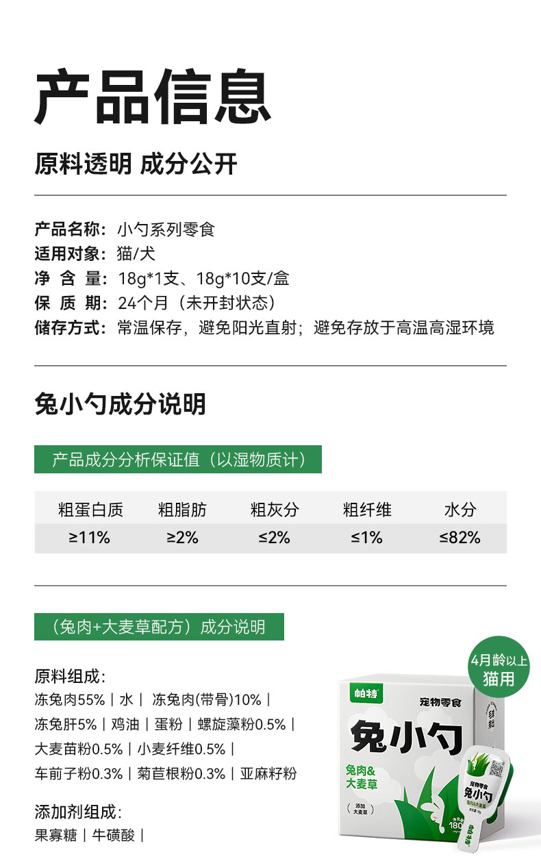 - ¥39.00【随便排出】兔肉+大麦草/猫用,18g*10