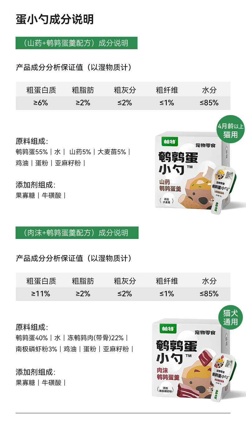 - ¥39.00【美毛护毛】肉末鹌鹑蛋羹/猫犬通用,18g*10