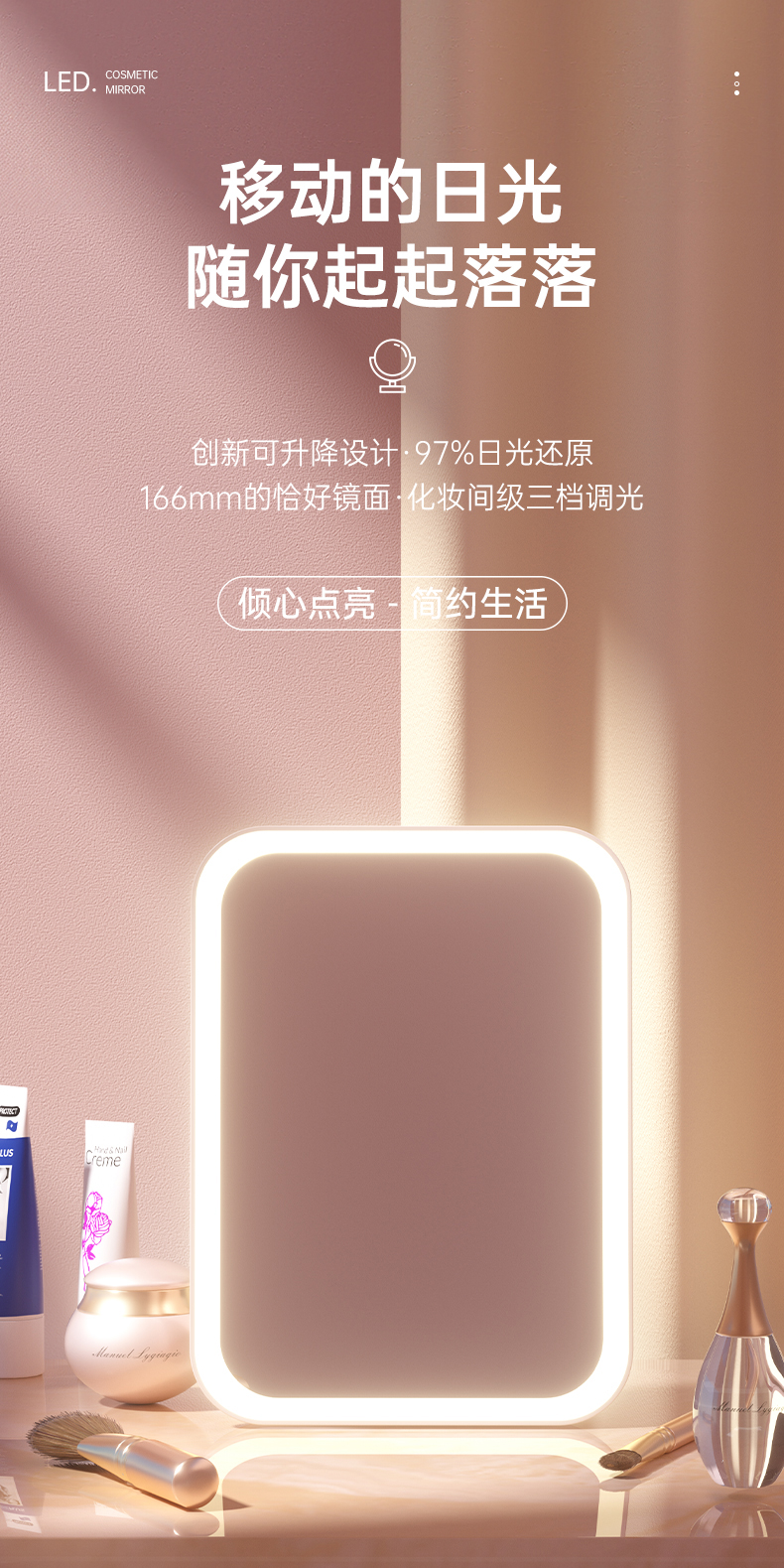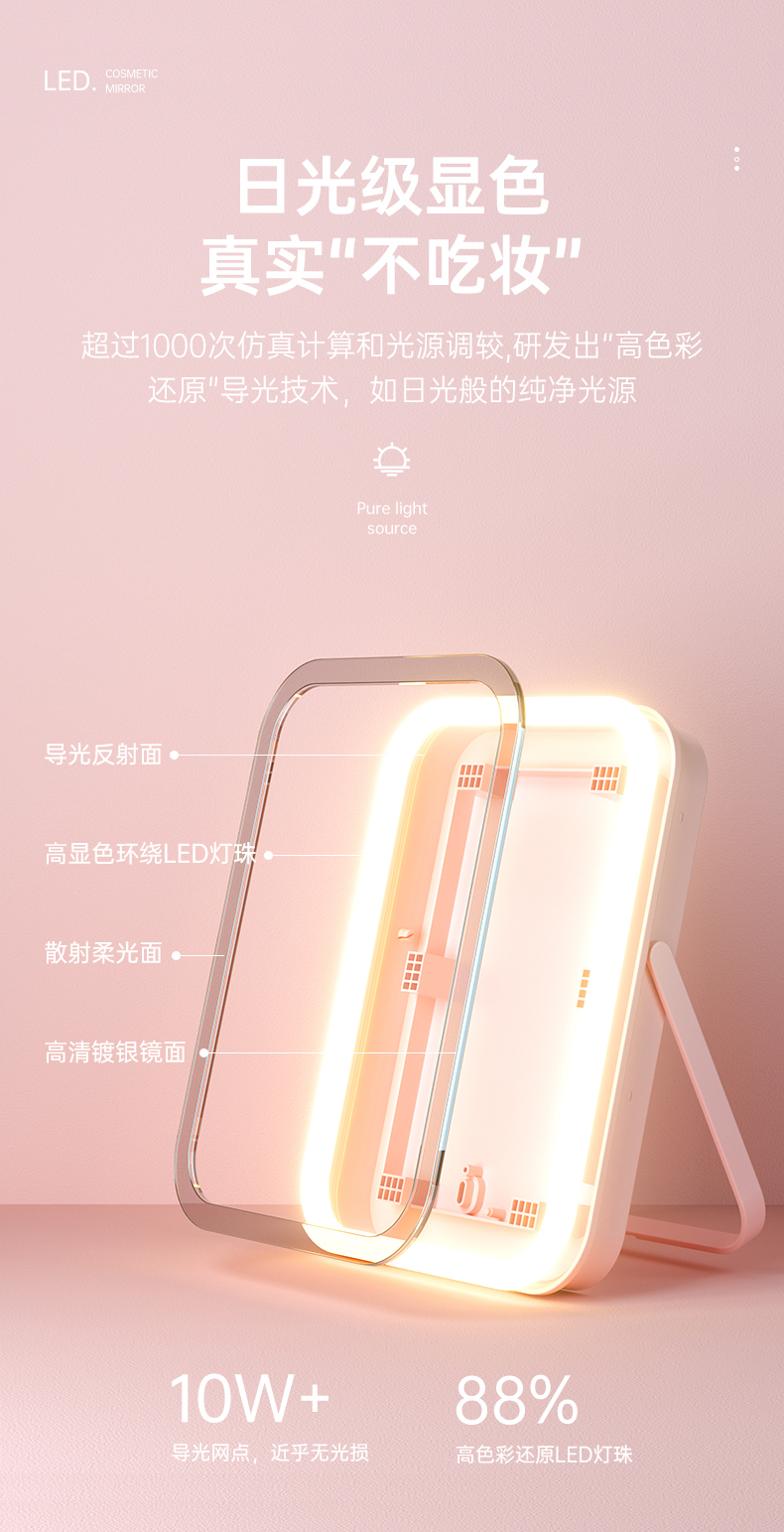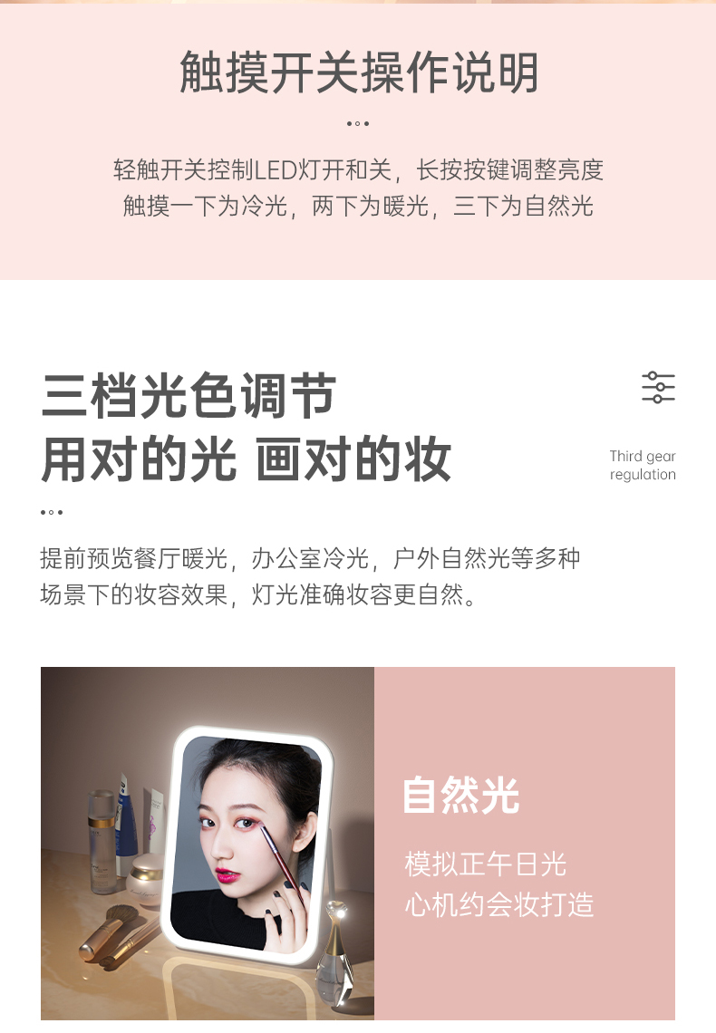 - ¥14.90胭脂粉-三档无极调光(方镜)20灯珠