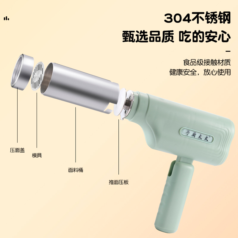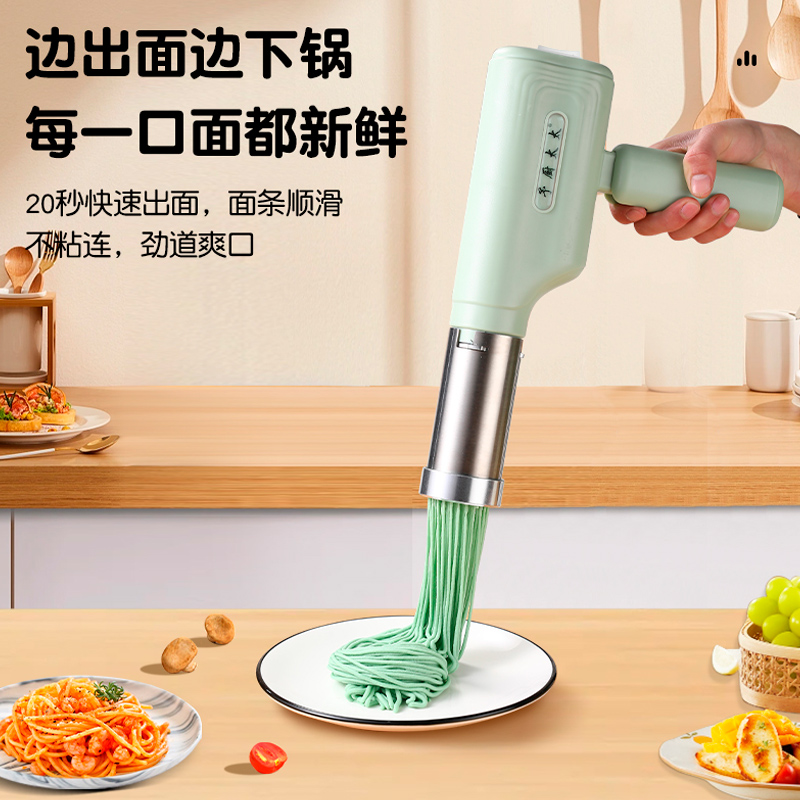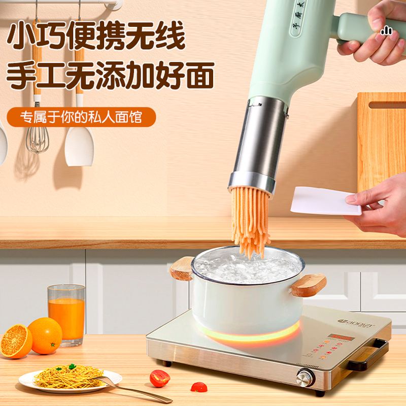 标题:【多功能无线手持面条机,家用神器,便捷高效!】 评价内容: 非常满意这次购物体验!这款多功能无线手持面条机真是厨房里的新宠儿,小巧便携的设计让我惊喜不已,无论是收纳还是携带都超级方便。操作简单易懂,一键启动,无需复杂设置,即使是厨房新手也能轻松上手。 最让我心动的是它的无线功能,摆脱了电线的束缚,无论是家里的哪个角落都能自由操作,做面条变得更加灵活自由。而且,折叠设计大大节省了空间,对于小户型家庭来说简直是福音。 面条机压出的面条口感劲道,粗细可调,满足了家人不同的口味需求。清洗也很方便,各个部件都可以轻松拆卸,用水一冲就干净,省时又省力。 性价比超高,99.9元的价格能买到这样一款集多功能、便携、高效于一体的面条机,真的是物超所值!强烈推荐给喜欢在家动手做美食的朋友们,有了它,制作健康美味的面条再也不是难题了!