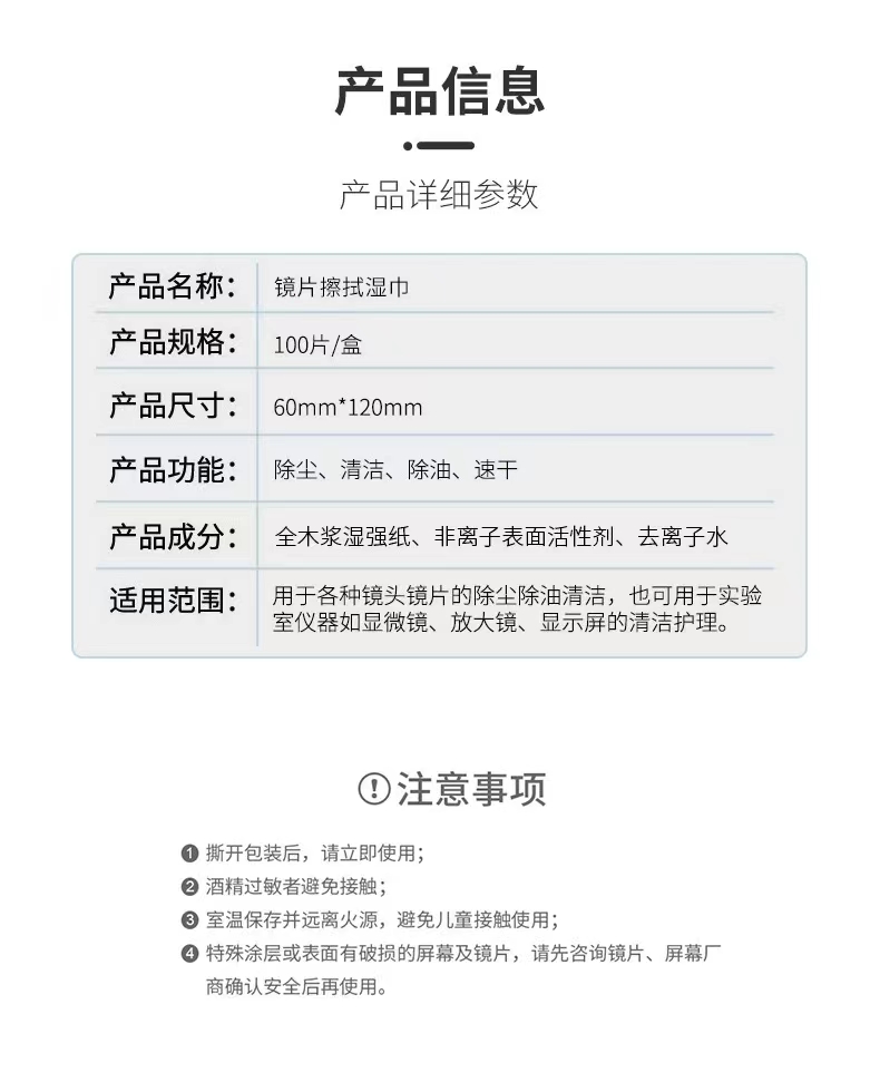 【超值100片装】眼镜擦拭湿巾纸除尘去油无痕清洁手机屏幕镜片神器