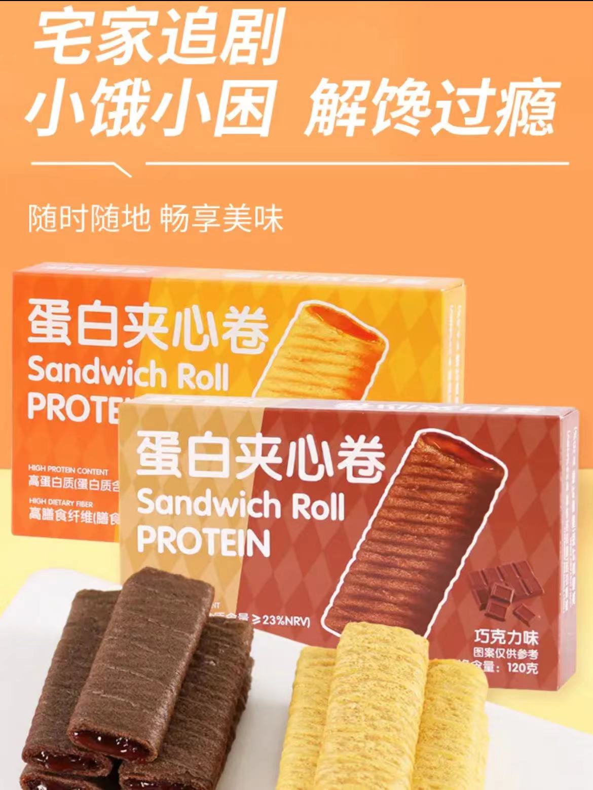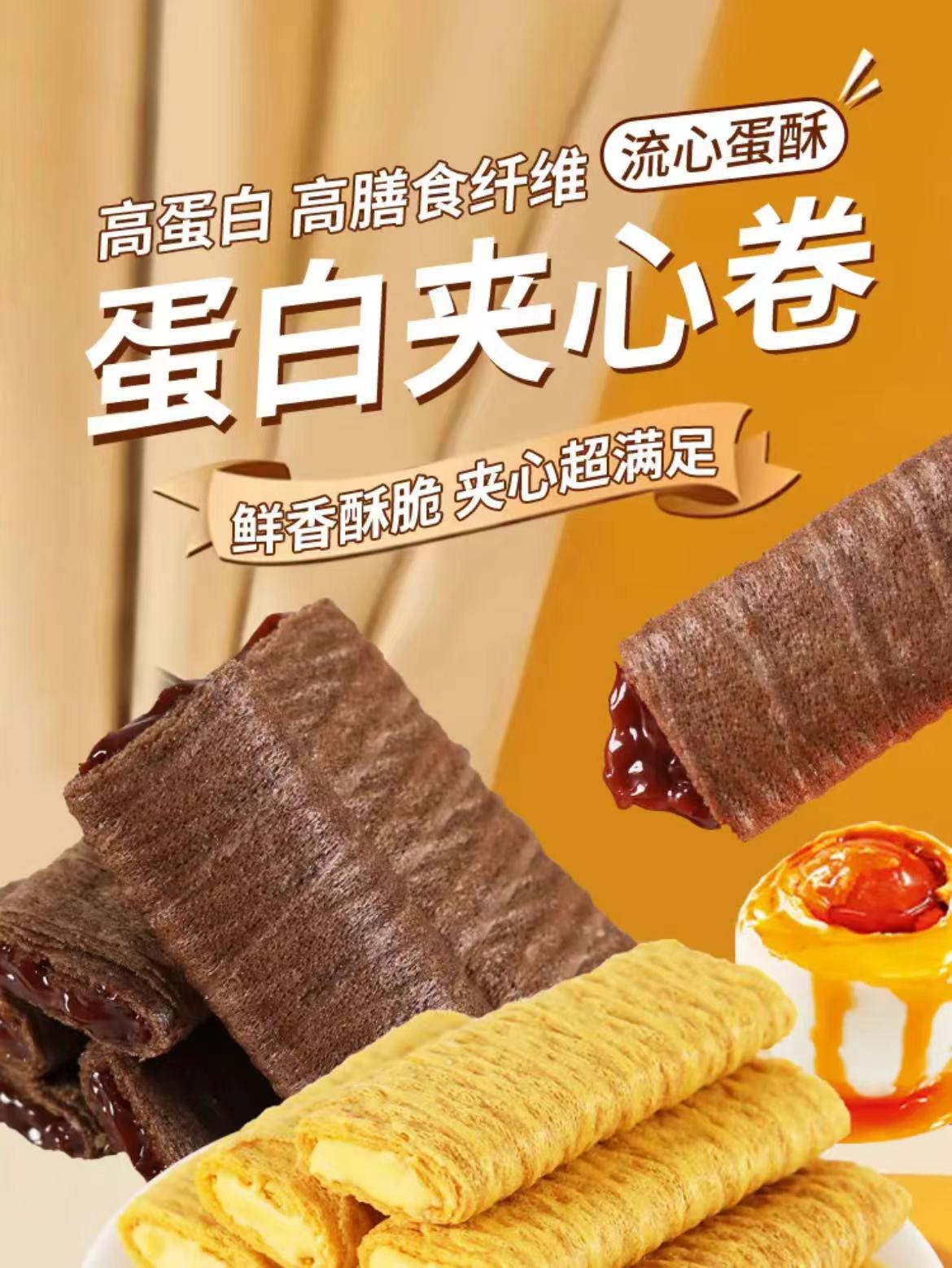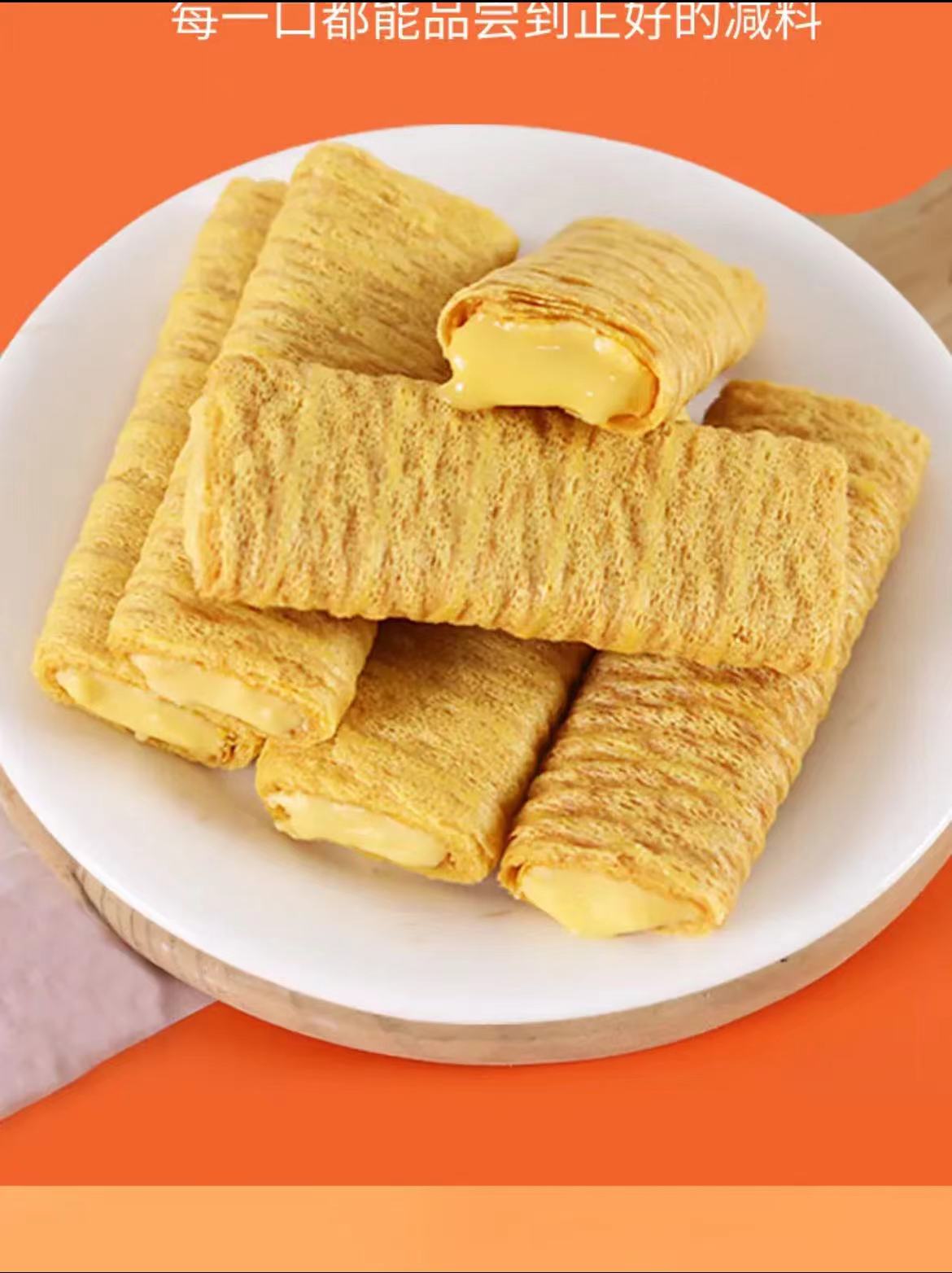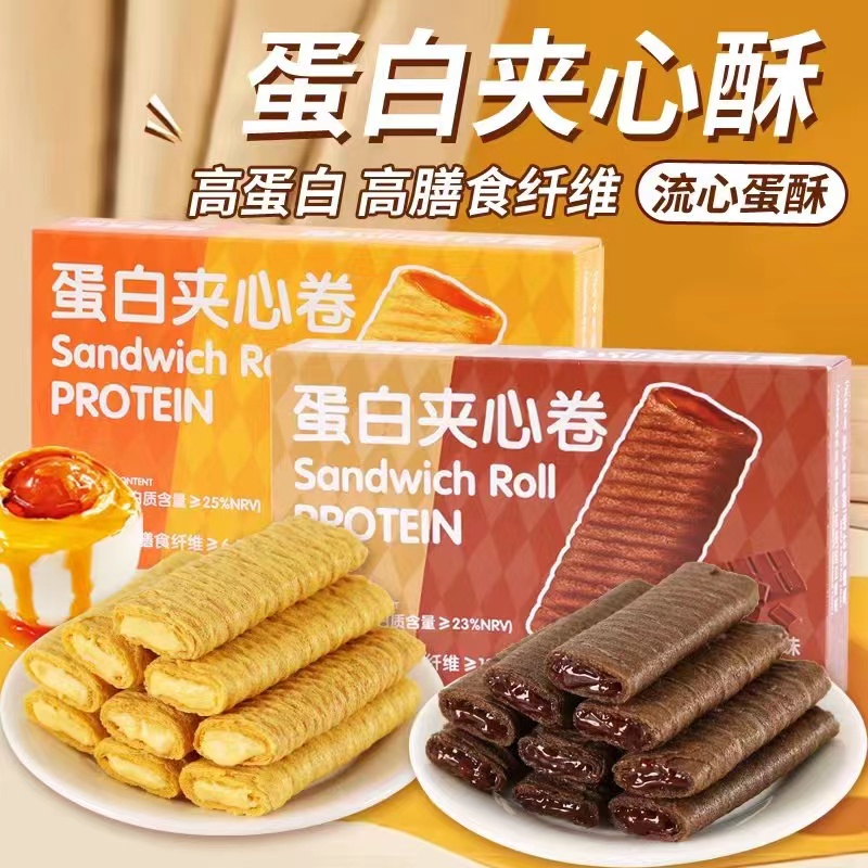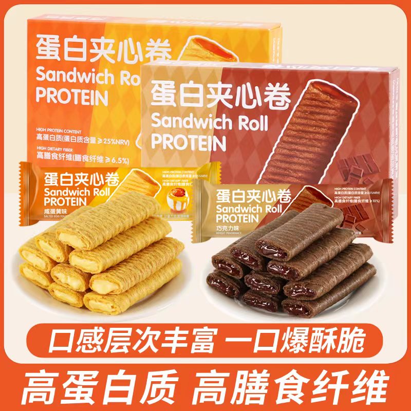高膳食纤维蛋白夹心卷酥脆饼干,0蔗糖