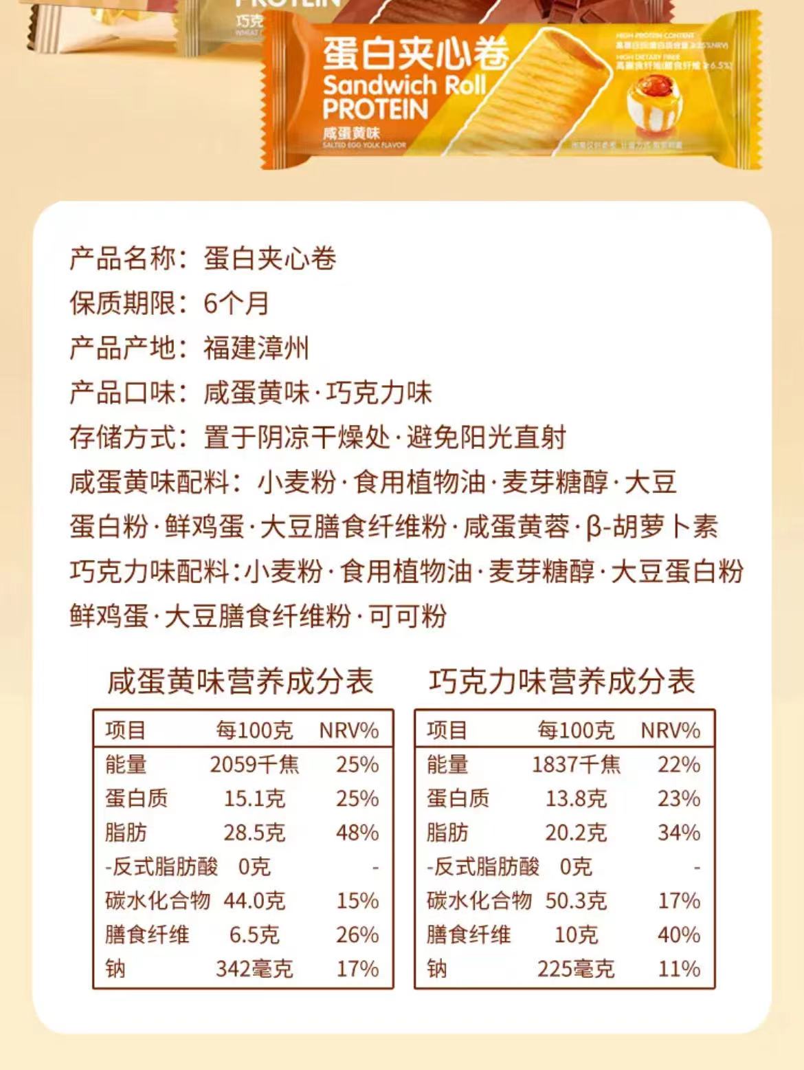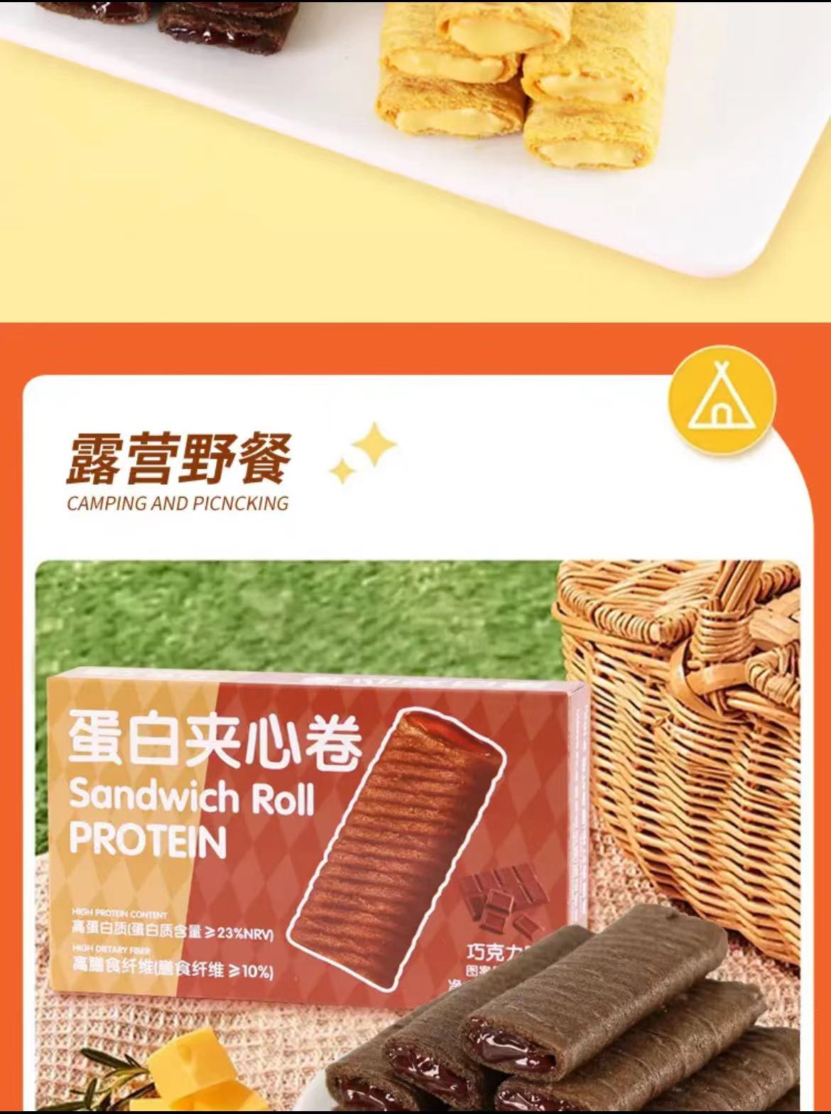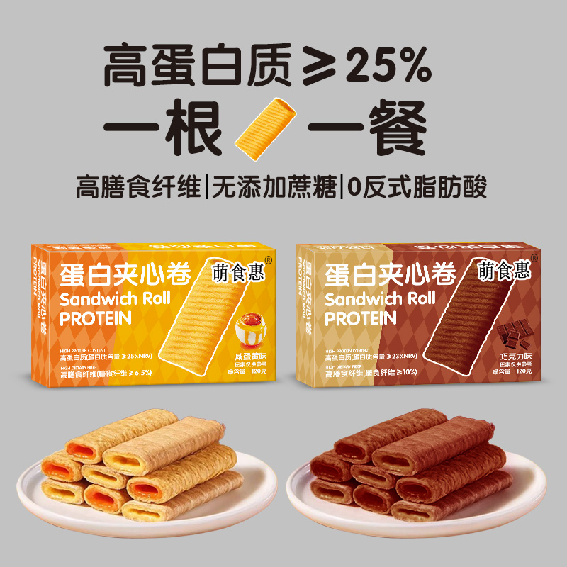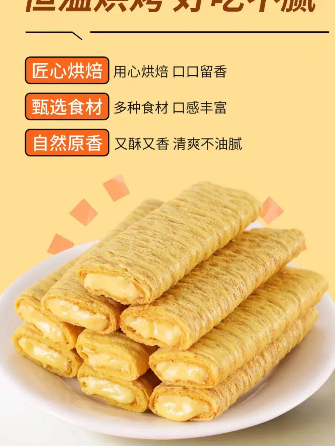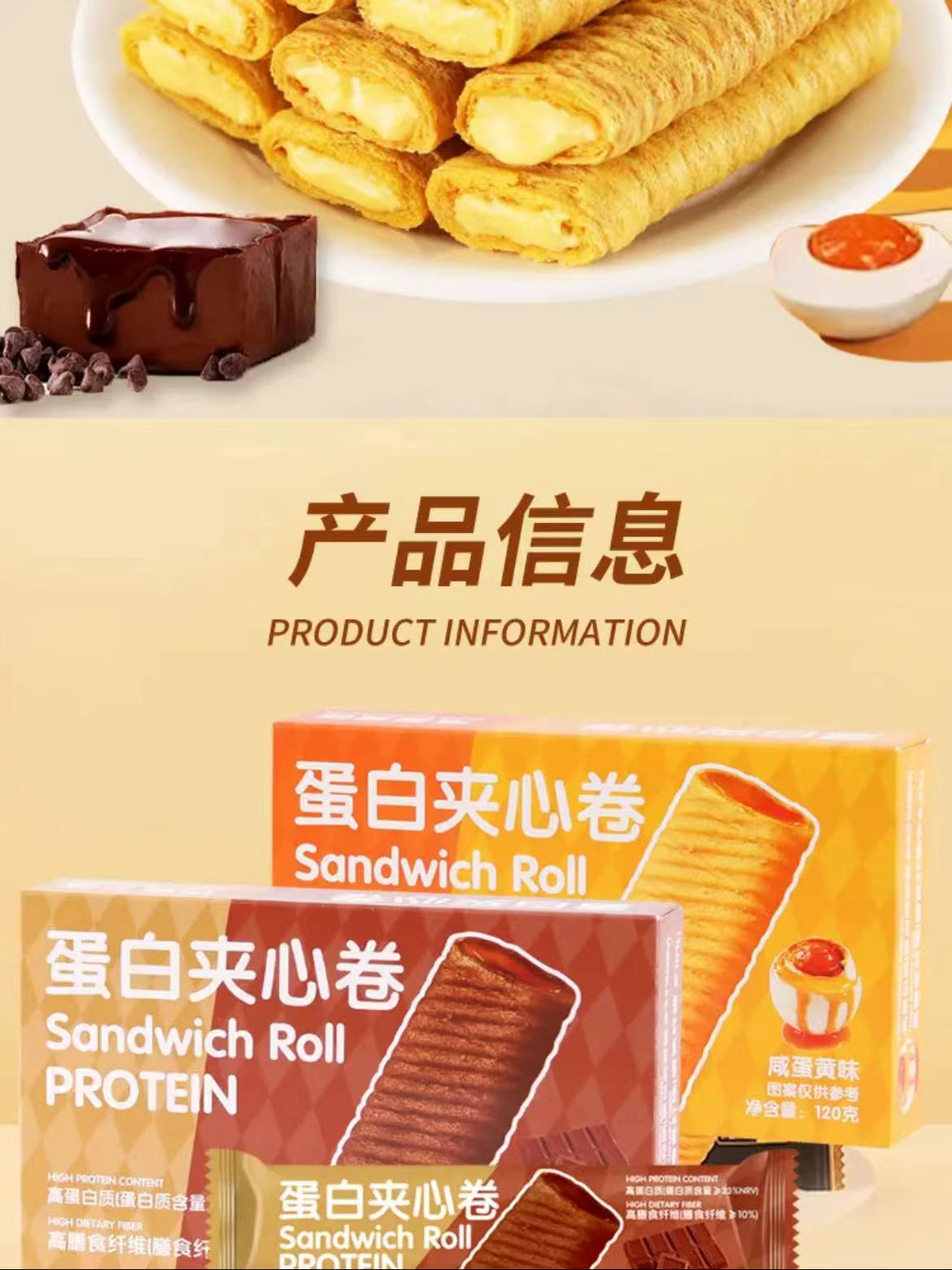 高膳食纤维蛋白夹心卷酥脆饼干,0蔗糖