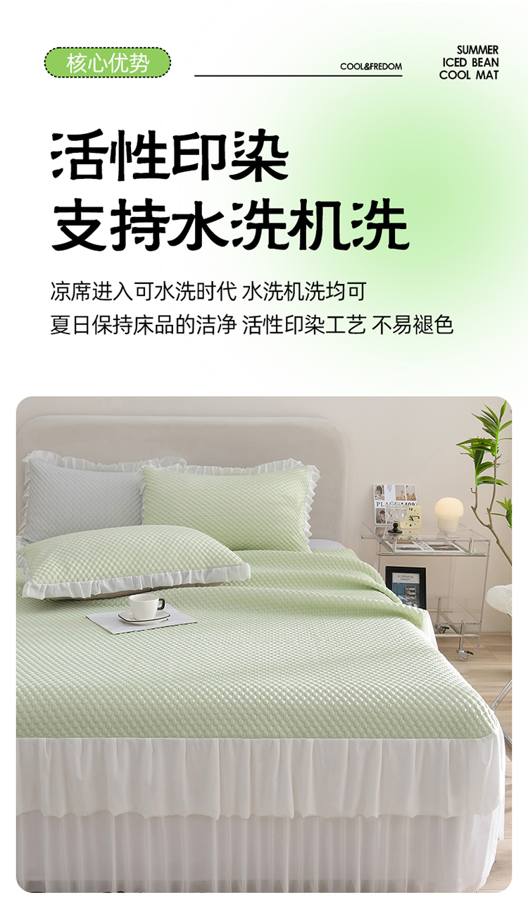 - ¥189.90 凉感冰豆豆「-水绿-」可机洗 裸睡不沾身 裸睡不沾,适用床尺寸〖180x200cm〗-凉感冰豆豆凉席