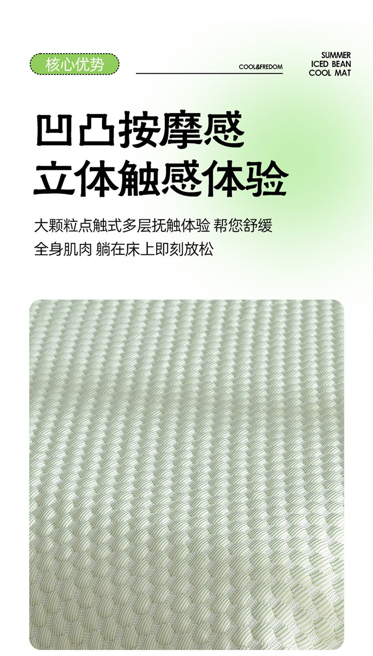 - ¥179.90 凉感冰豆豆「-水绿-」可机洗 裸睡不沾身 裸睡不沾,适用床尺寸【150x200cm〗-凉感冰豆豆凉席