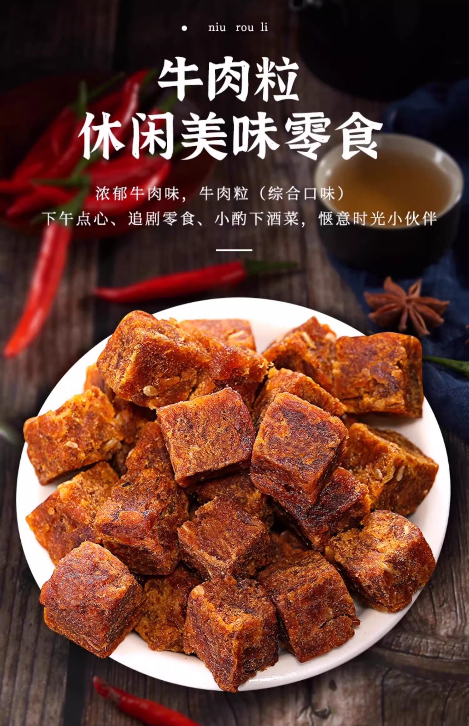 - ¥6.90100粒(牛肉粒),【五香味98-103包】牛肉粒