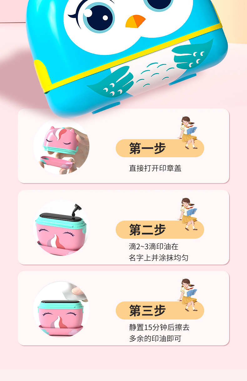- ¥19.80盖印图案A-24,猫头鹰印章+补充液+手写姓名贴,【下单备注好名字】