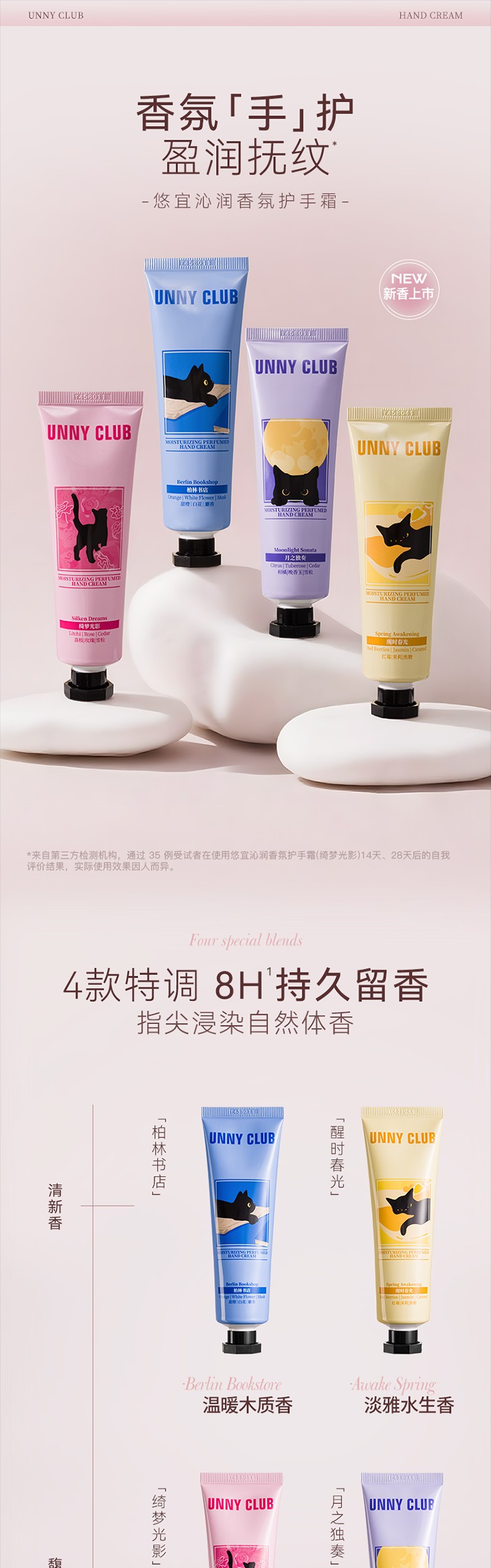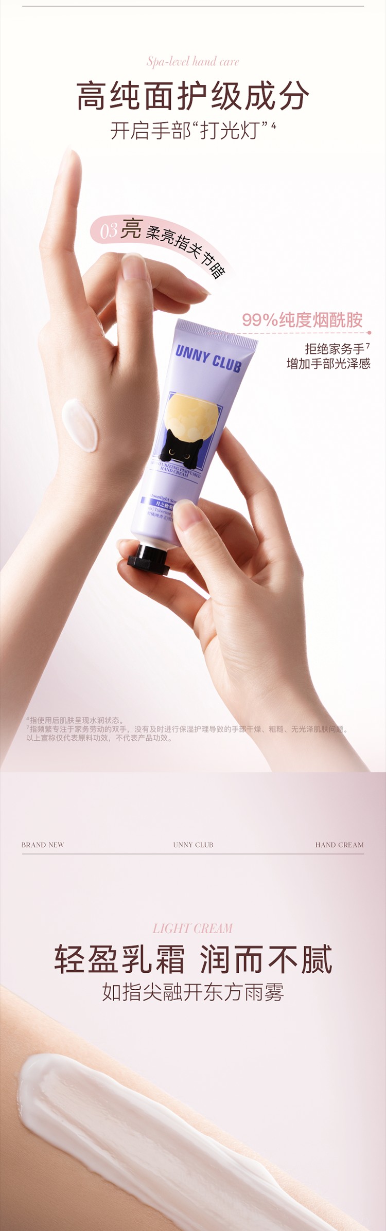 自从入手了这款UNNY悠宜沁润柔嫩护手霜,我的双手就像是得到了春日里最温柔的呵护!无论是等春树、春日约还是仲夏梦这三个系列,每一款都以其独特的魅力,让我爱不释手。