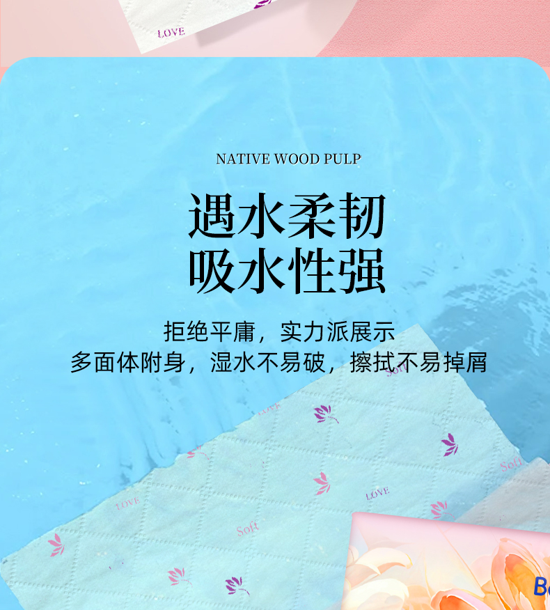 3. 这款抽纸非常方便使用,可湿水,给宝宝洗澡的时候用非常方便。