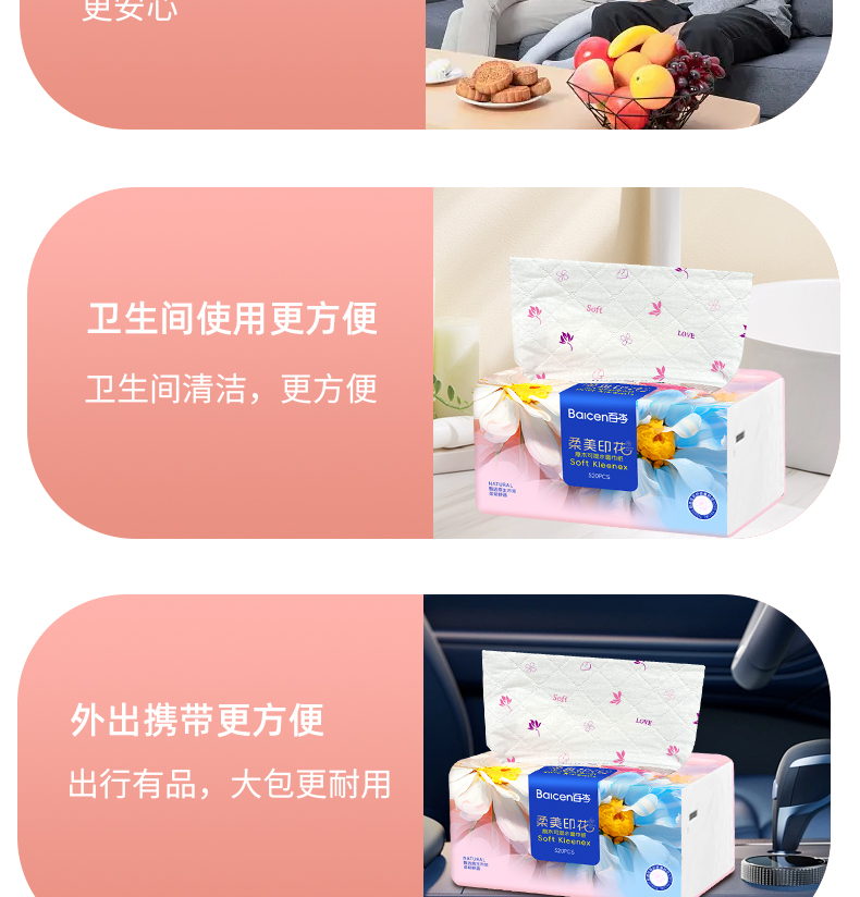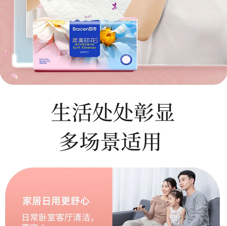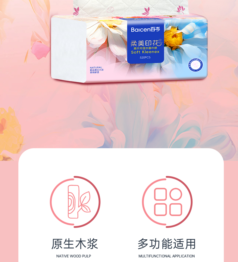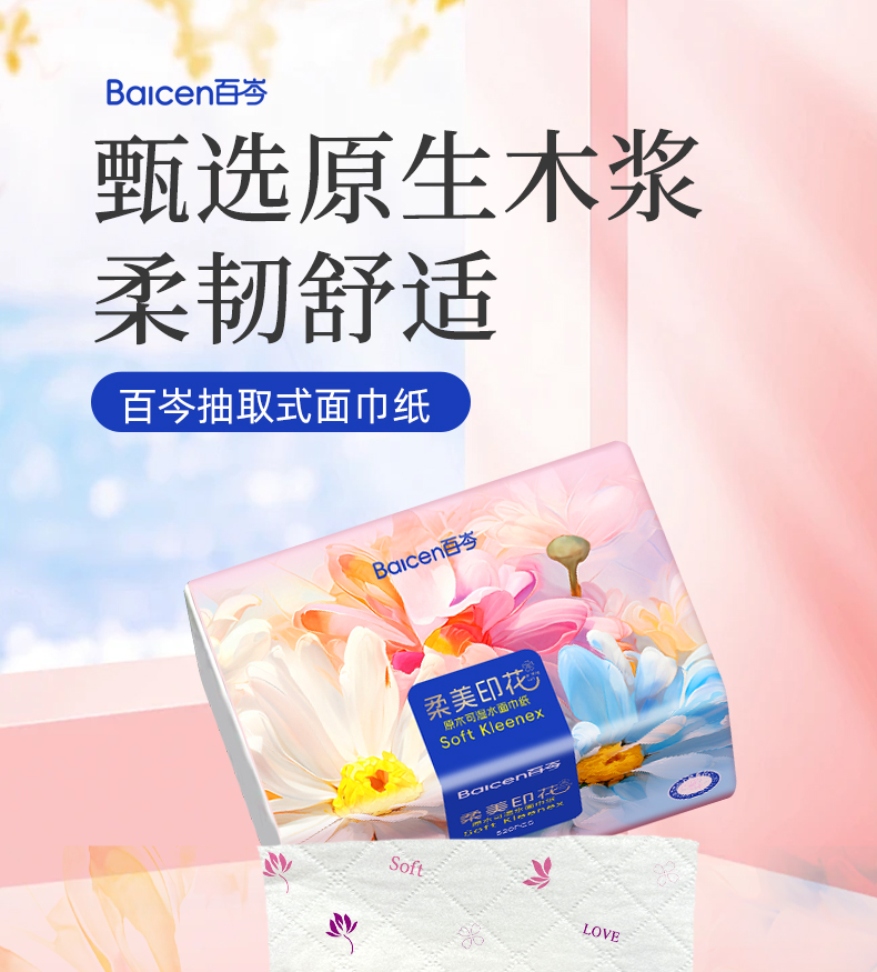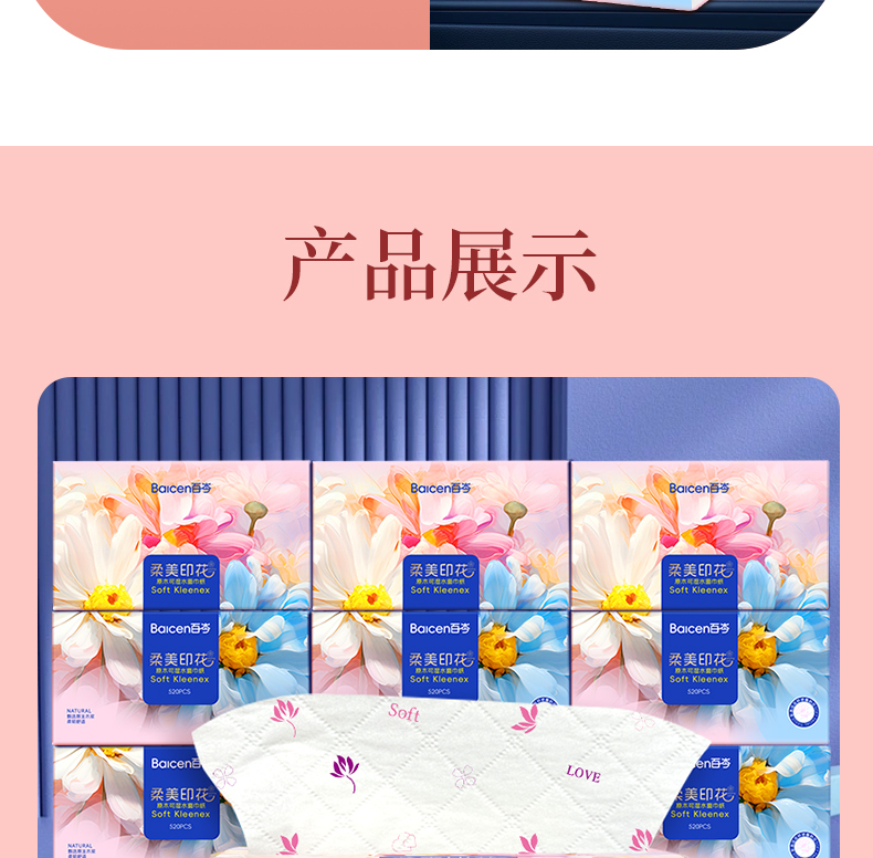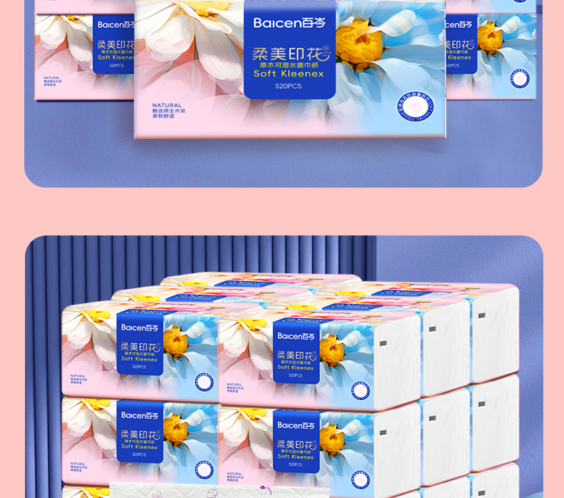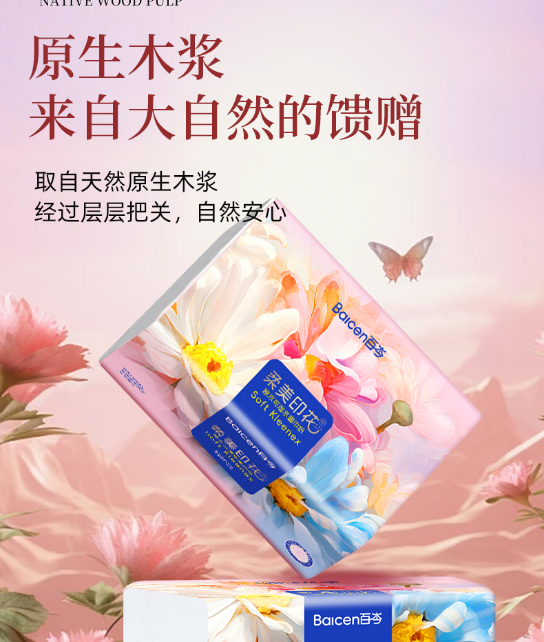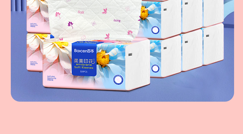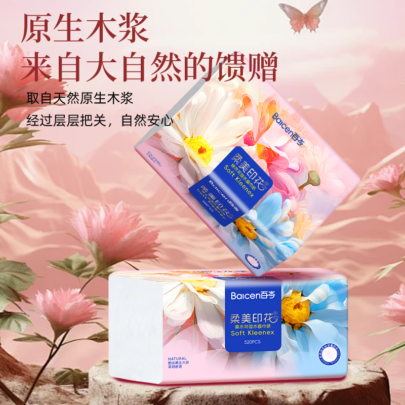 - ¥29.90百岑520张20包(带彩色印花)104抽*20包