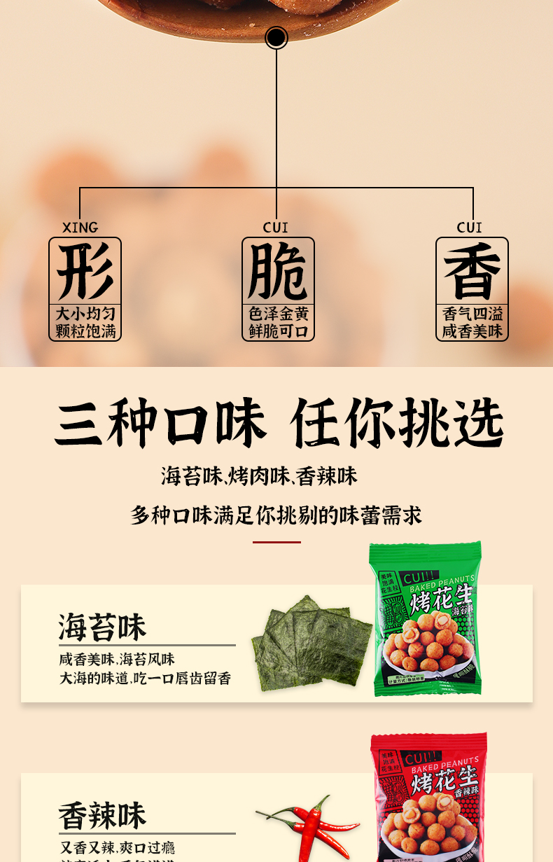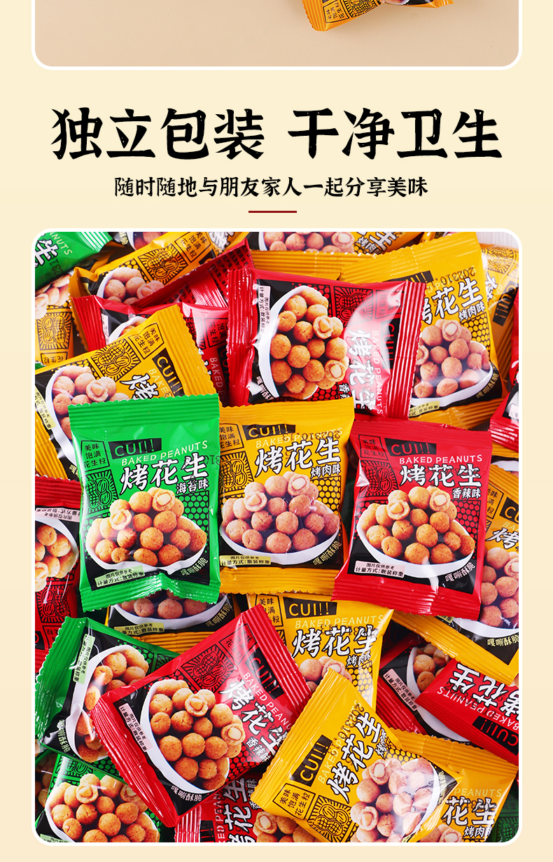 "这款多味花生真是太棒了!我买了3种口味的,每种都很好吃。特别是烤肉味和香辣味,真的让人回味无穷。花生豆很饱满,酥脆可口,咸香适中,真是下酒菜和休闲零食的绝佳选择。"