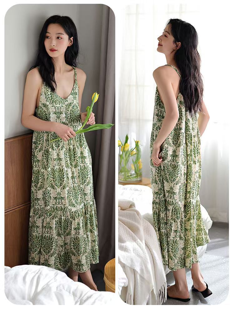 3. 这款睡裙的颜色很漂亮,绿色很清新,尺码也很准确,穿上之后感觉很舒适,外穿也没有问题。