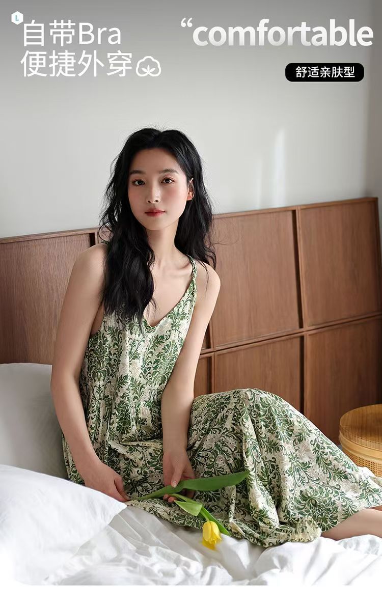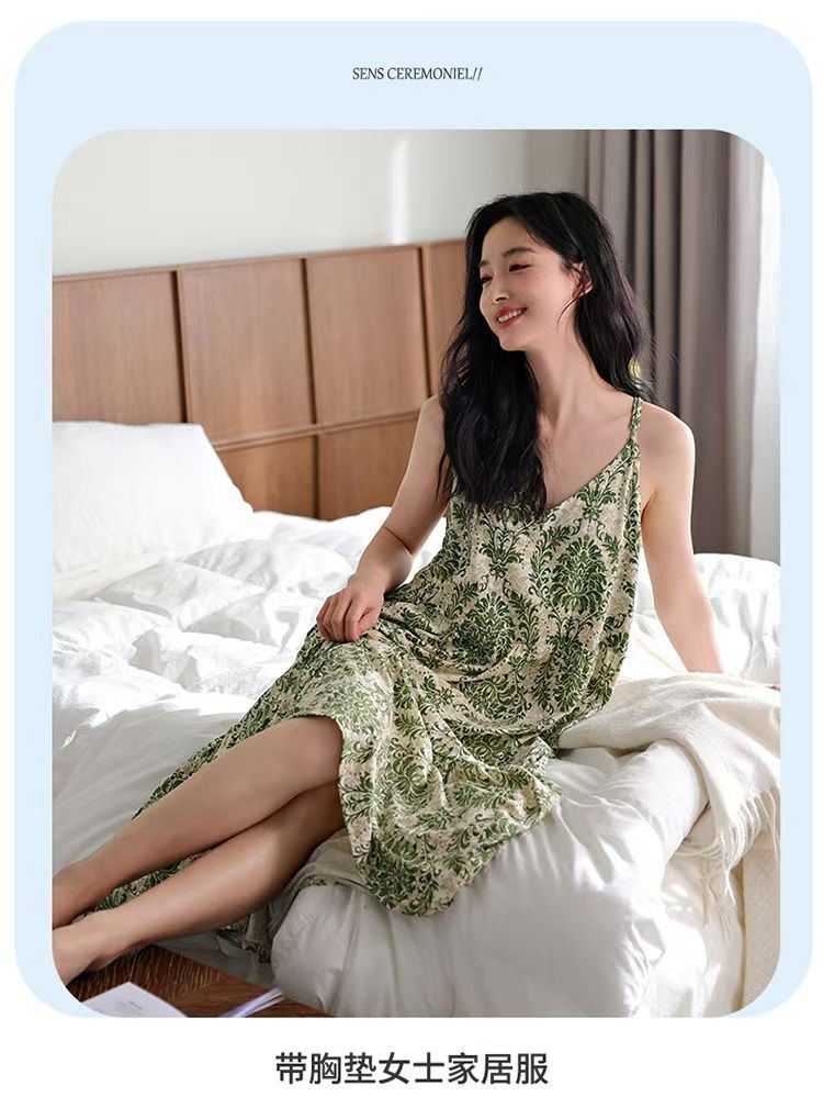 7. 这款睡裙适合夏天穿,因为带胸垫的设计可以避免内衣的麻烦,而且整体设计也很时尚。