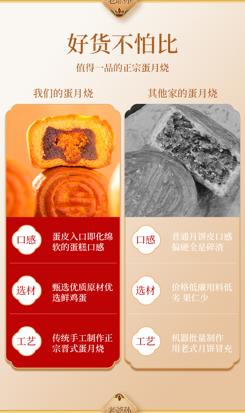 总的来说,这款老爷孙蛋月烧月饼无论是从口味、品质、包装还是性价比上,都超出了我的预期,是一次非常满意的购物体验。下次中秋,我还会继续回购,也会推荐给周围的朋友,让更多人享受到这份美味!