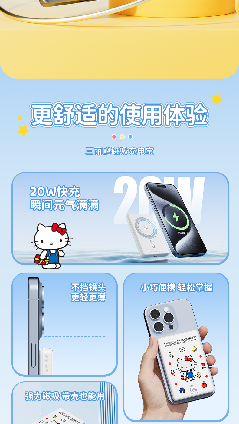 这款充电宝真的太可爱了,特别是白色的凯蒂猫款,非常适合女生使用。