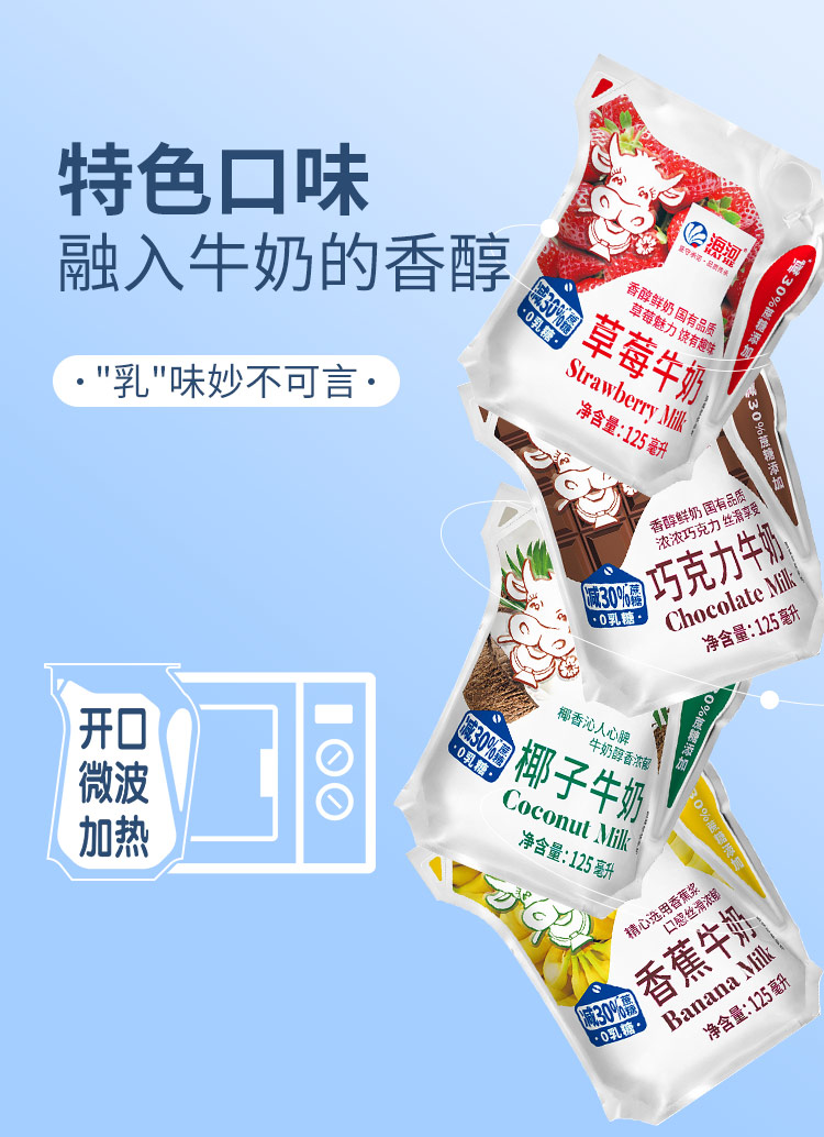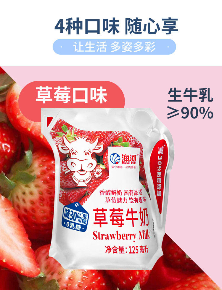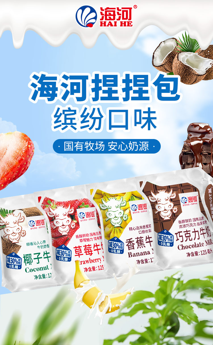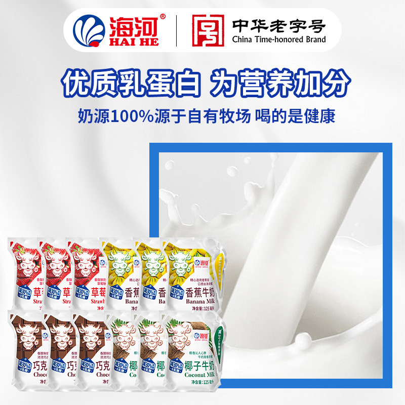 海河牛奶0乳糖混合口味牛奶125ml*10袋 学生营养早餐奶便携捏捏包