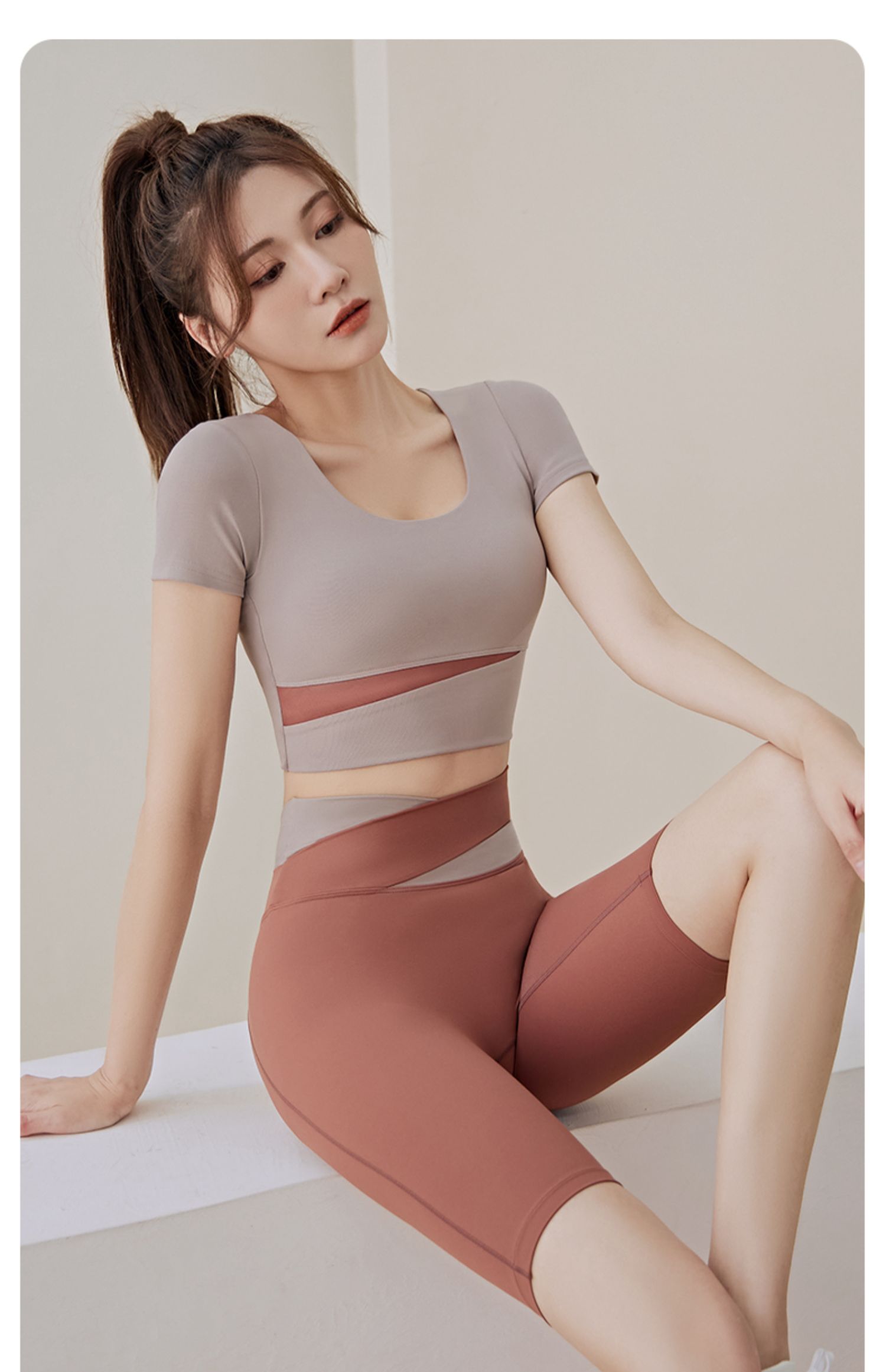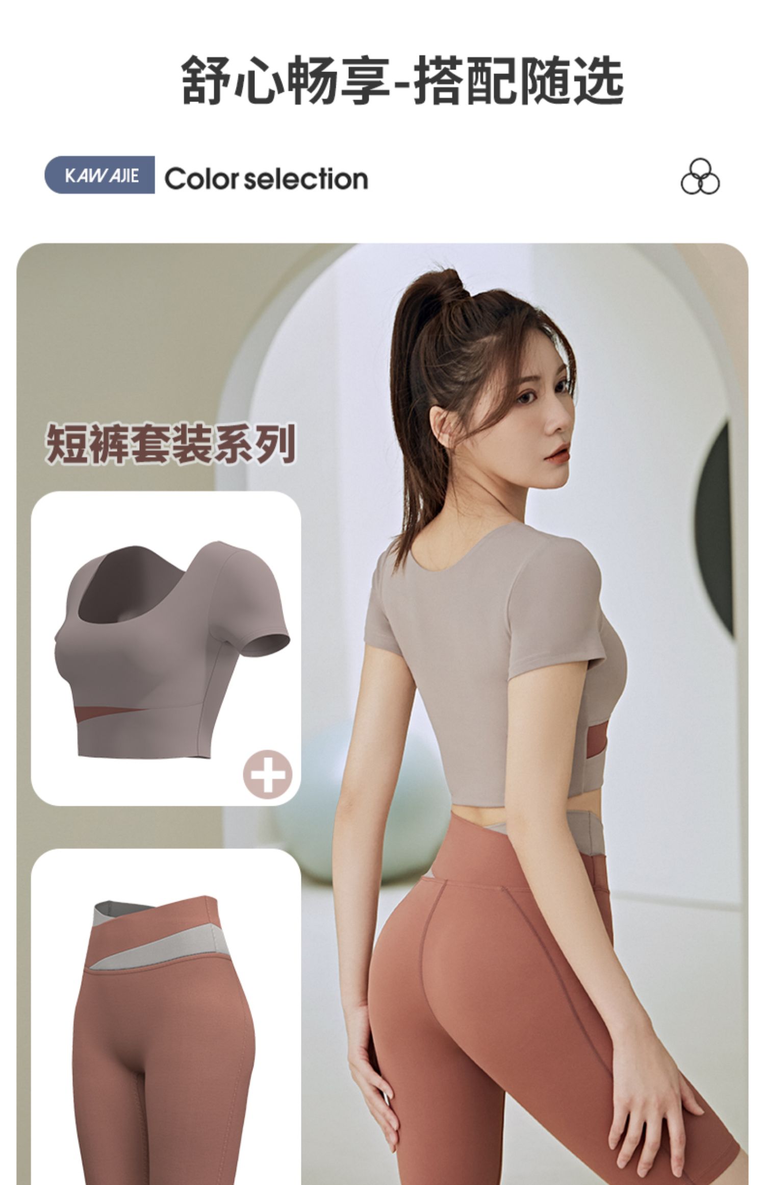 - ¥59.90【短袖套装】象牙白+可可色,S【85-95斤】