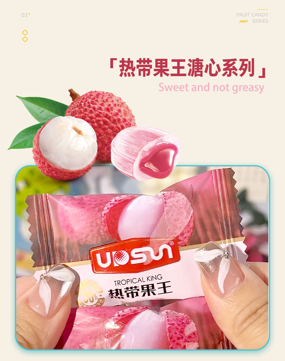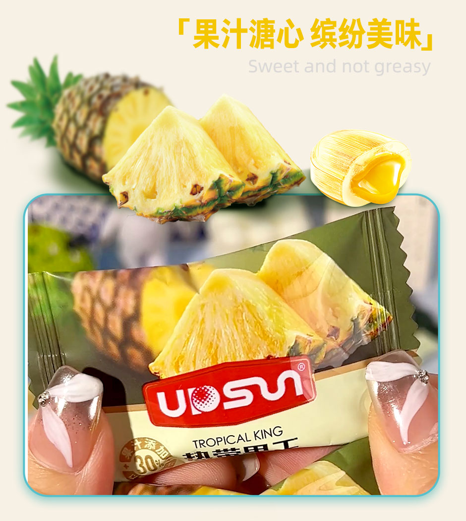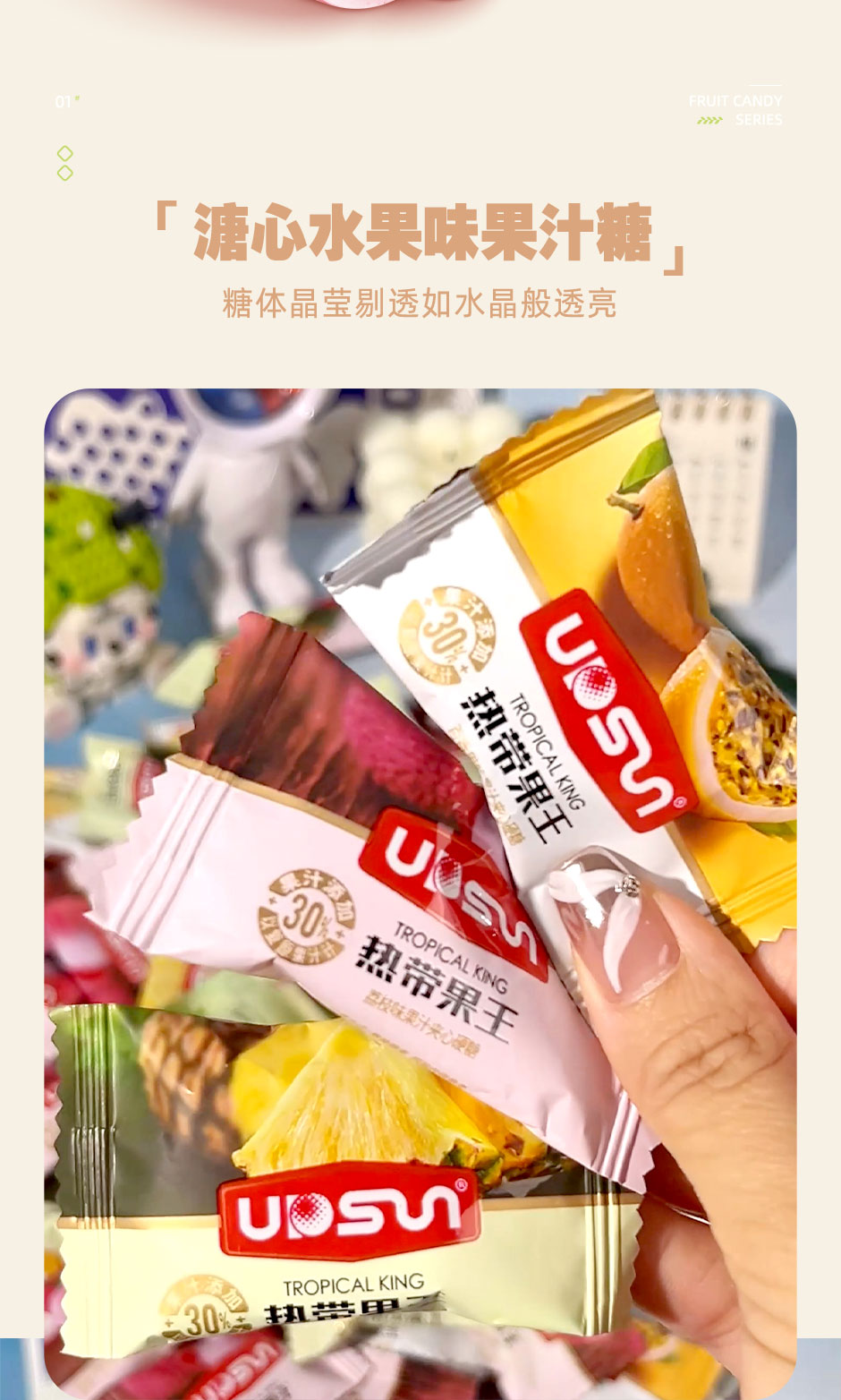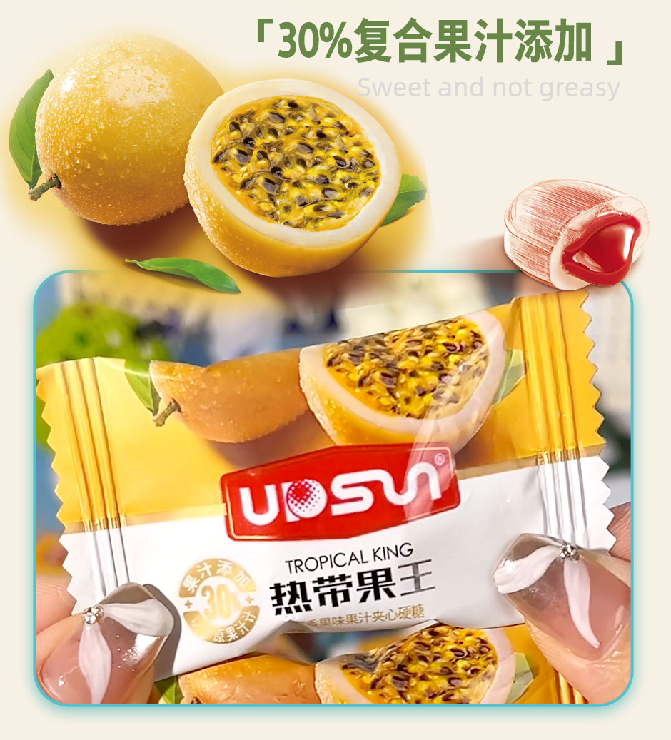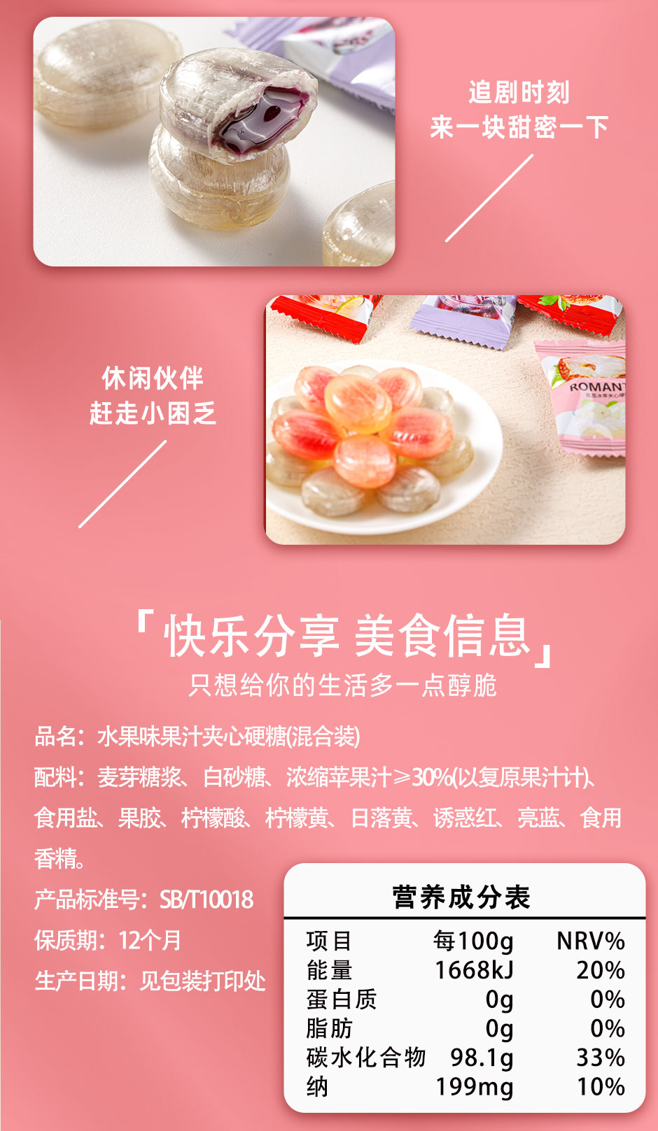 1,古早的糖果味道,清新的果香不齁甜,糖壳品莹剔透,包裹夹心,里面还添加了30%复合果汁,水果味特别浓郁,吃完嘴巴里都香香的。