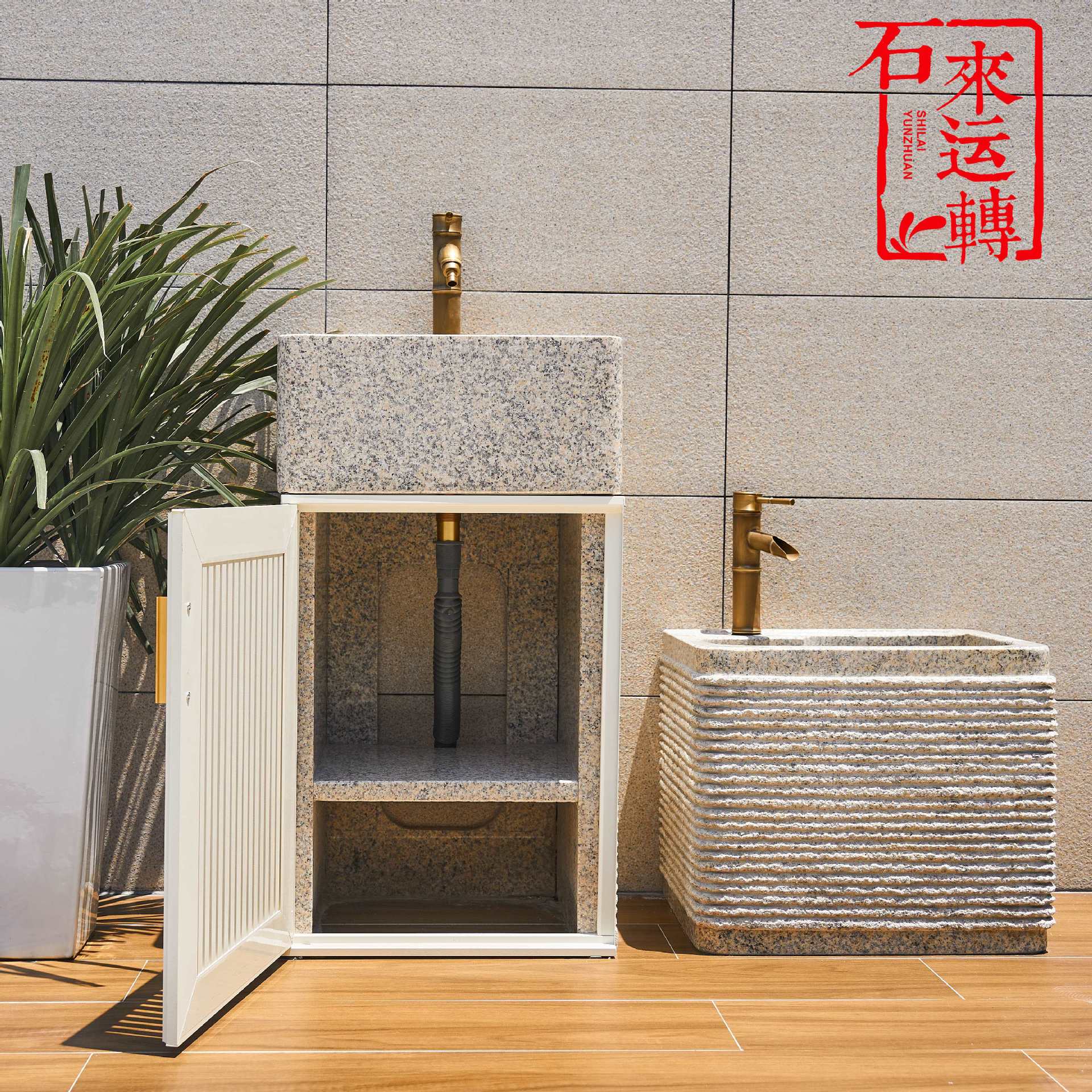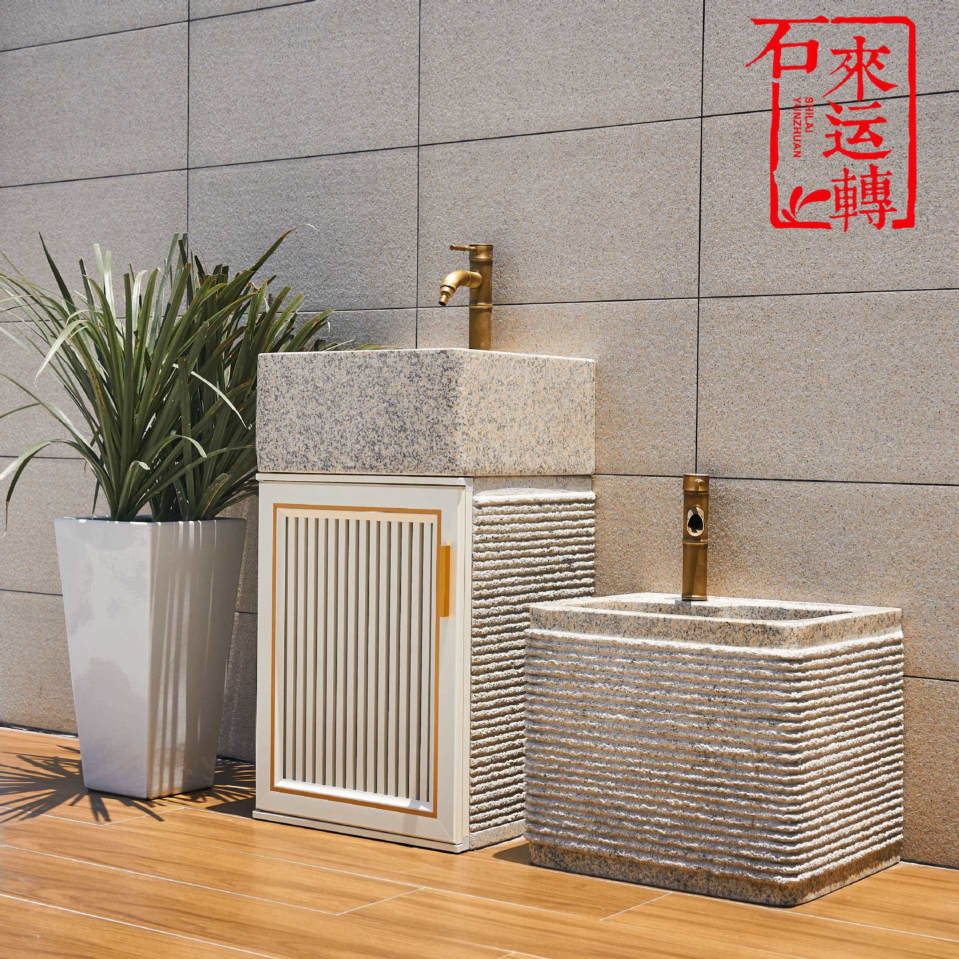 大理石庭院户外石头洗手盆别墅花园洗手台院子水池室外石材洗手池