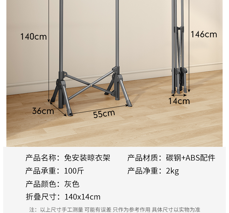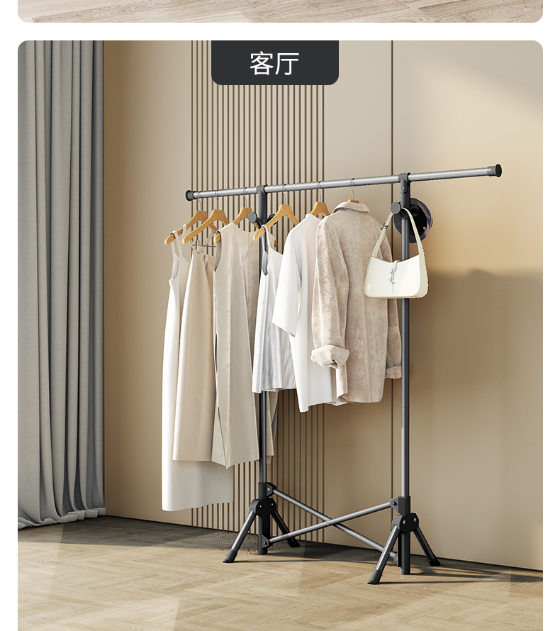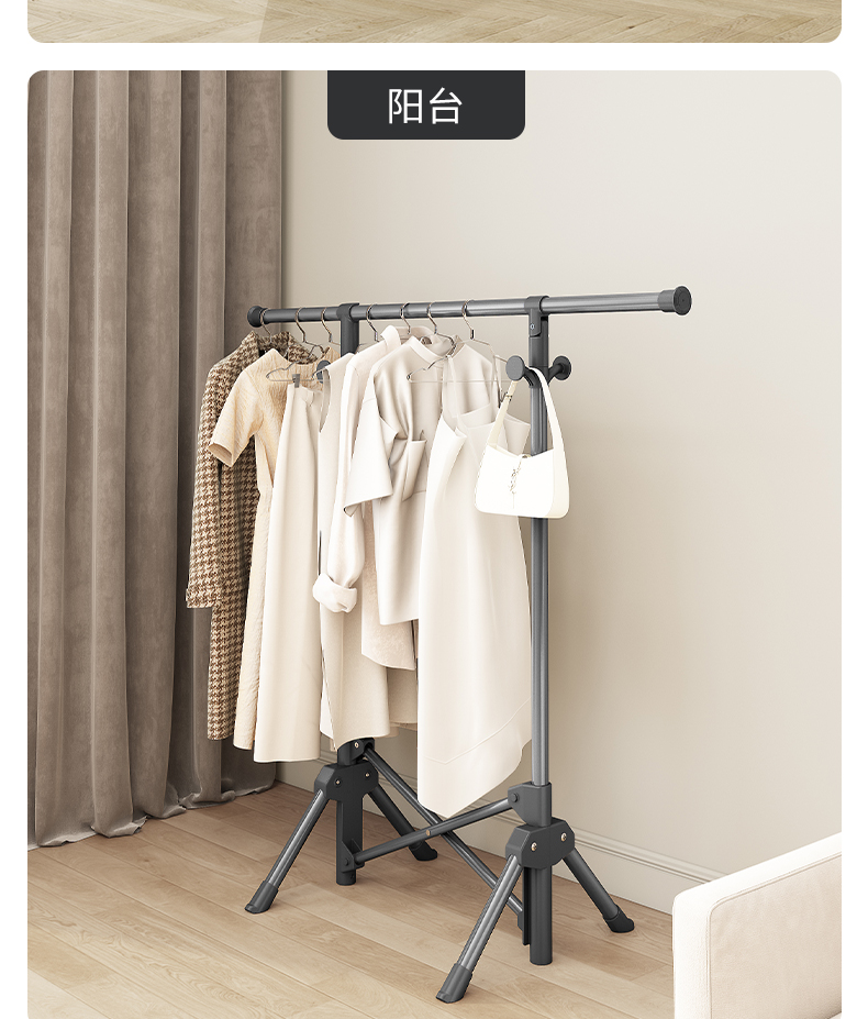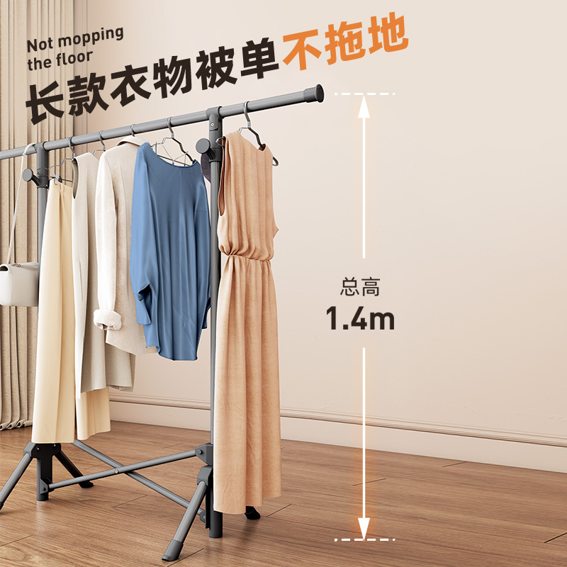 【晾衣架子落地式】大衣室内专用晾衣架免安装加粗折叠衣架子落地式
