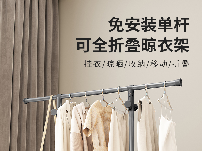 【双12福利】晾衣架室内专用简易晾衣架免安装加粗折叠落地式挂衣架