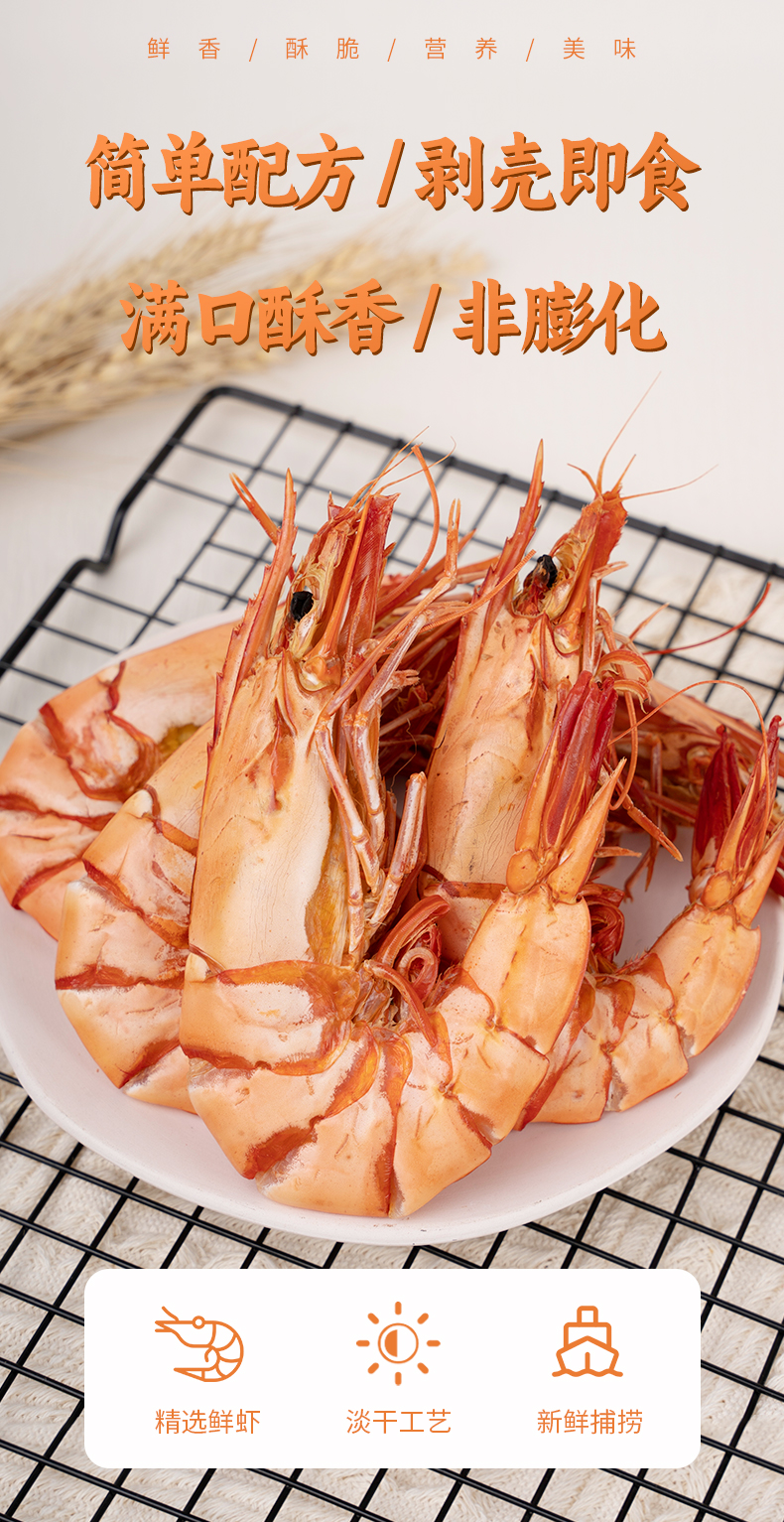【虾如意】大号虾九节虾拍80g*3包 烤虾即食海鲜斑节虾干货冷冻保存
