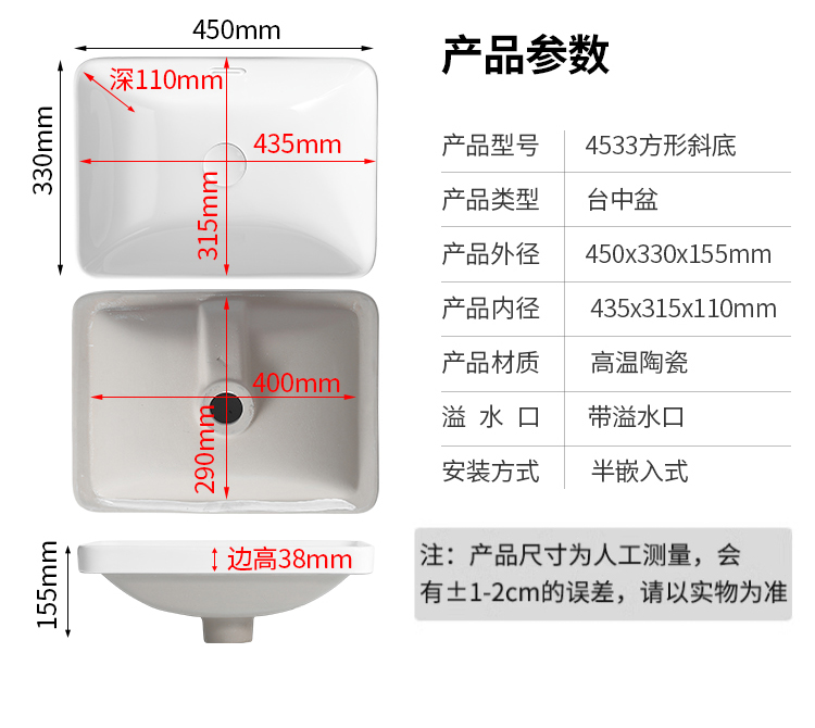 - ¥336.004533台中圆弧斜底单盆+纯白抽拉龙头配件全套