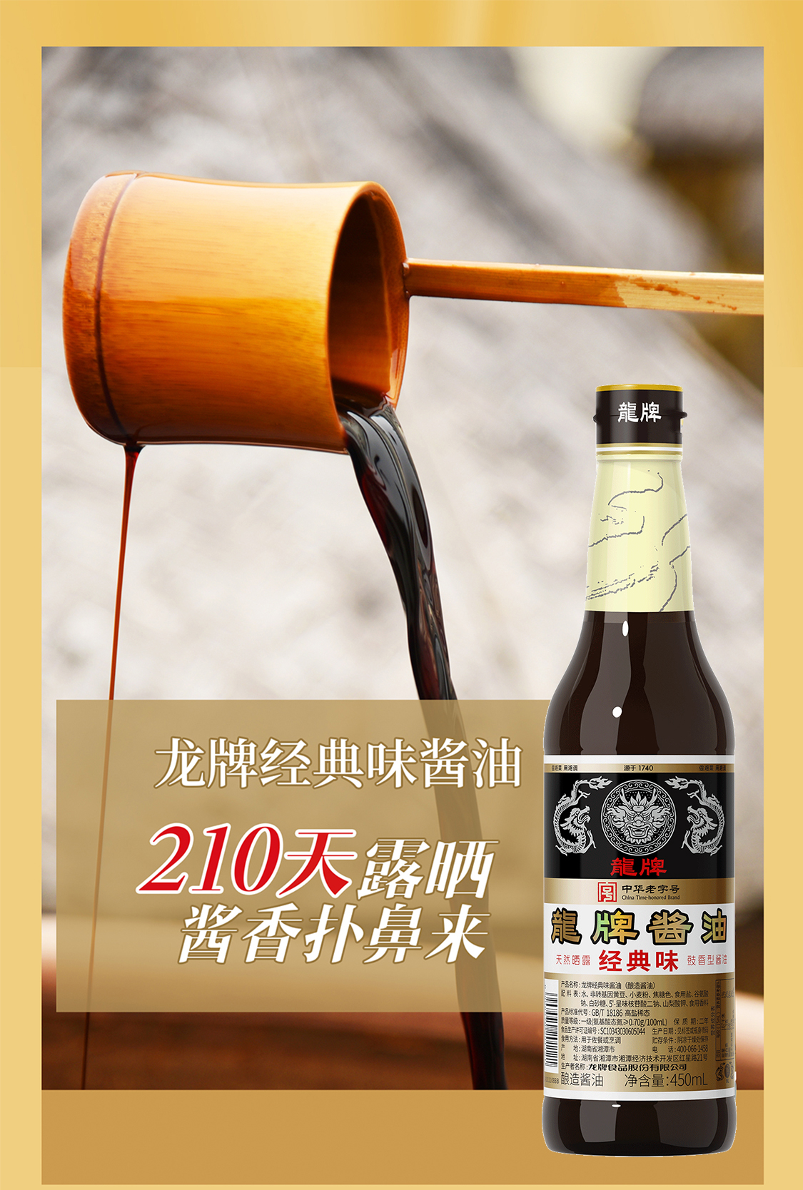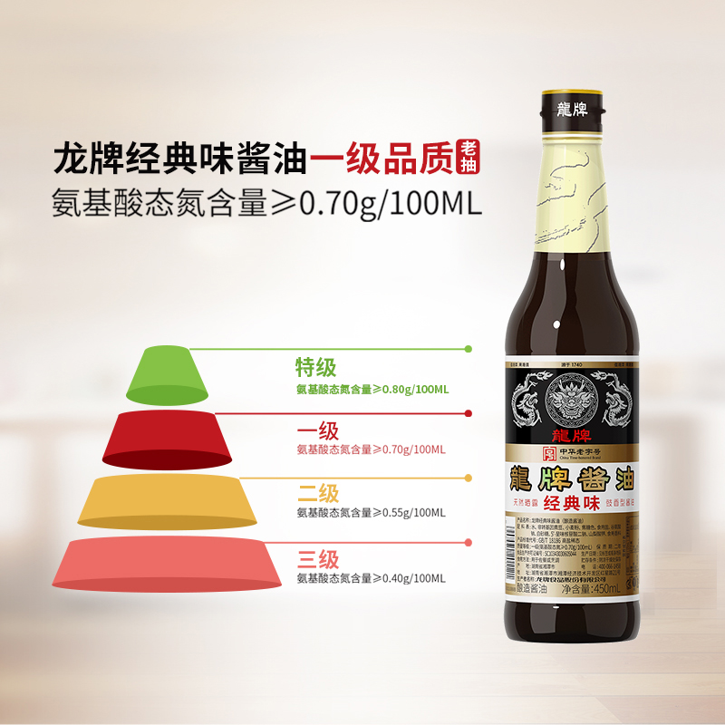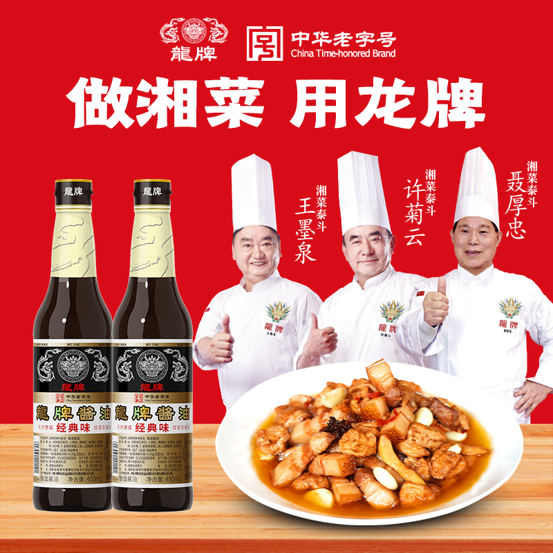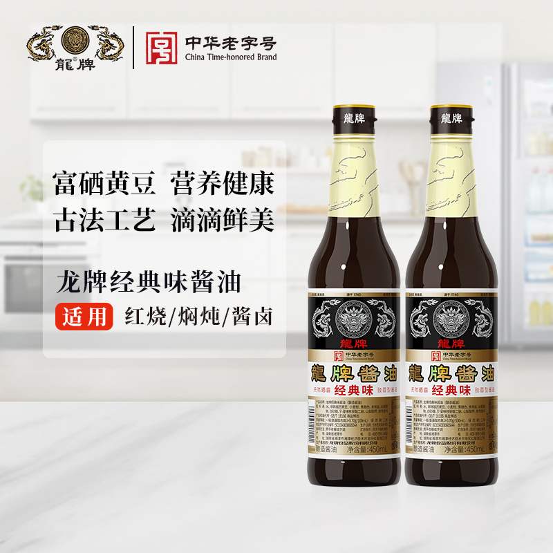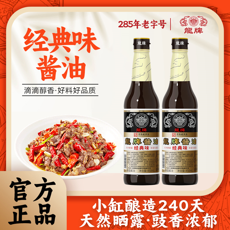 龙牌经典味酱油450ml*2瓶传统酱园酿造家用老抽晒足240正宗老酱油