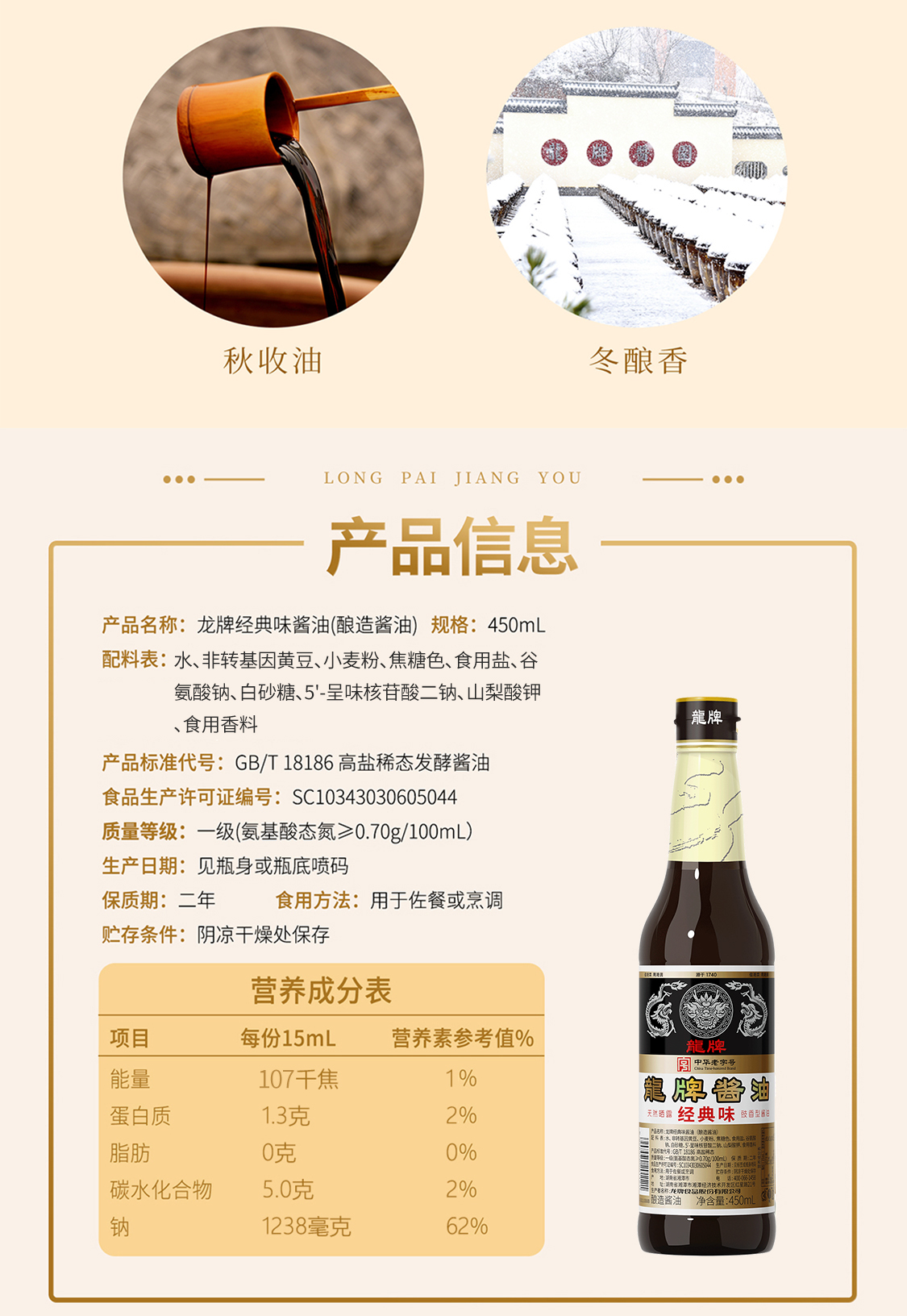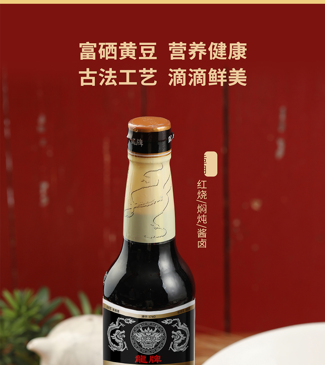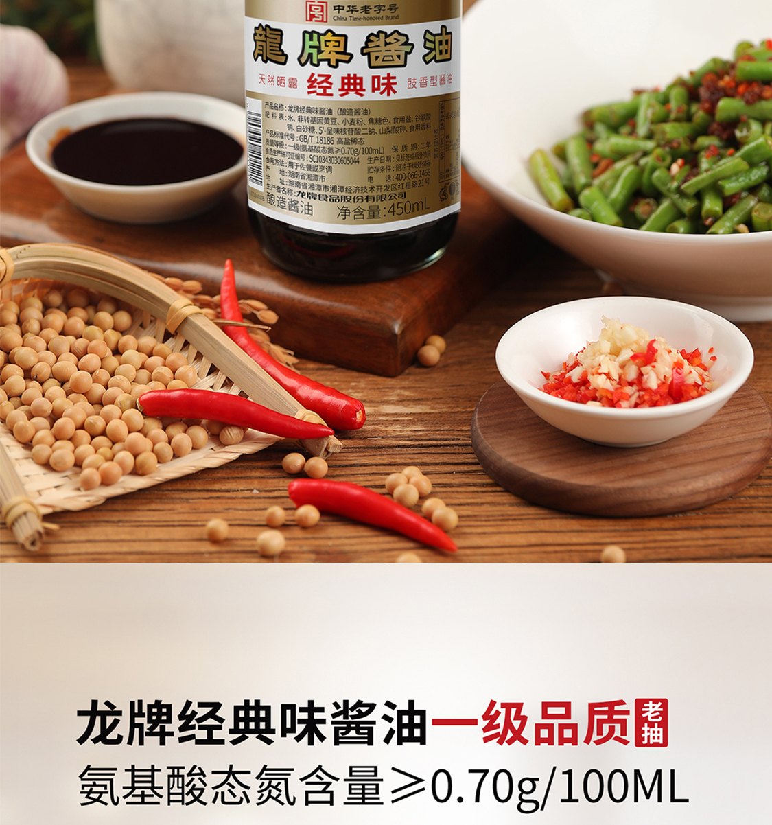 龙牌经典味酱油450ml*2瓶传统酱园酿造家用老抽晒足240正宗老酱油
