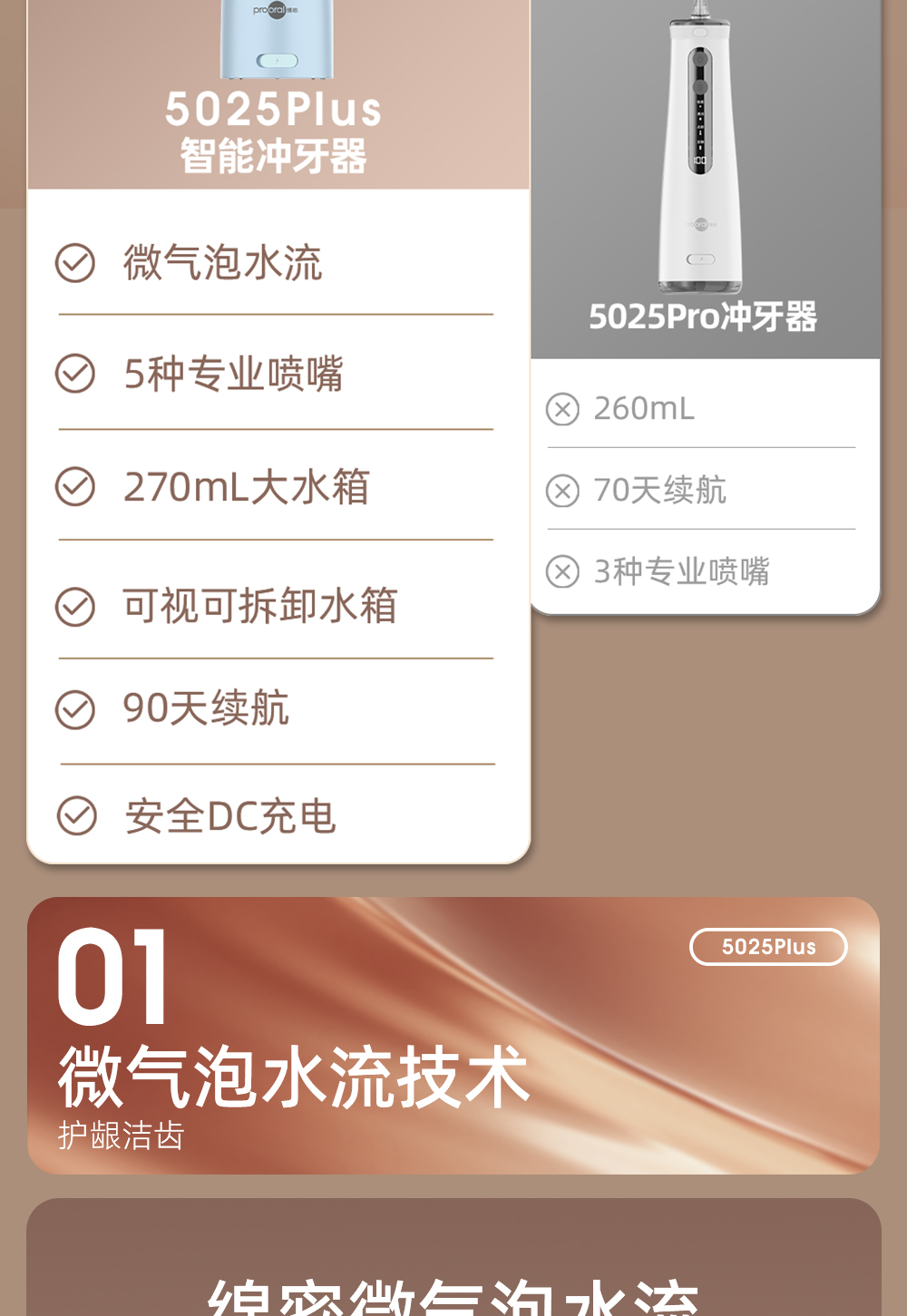 prooral/博皓5025Plus智显冲牙器微气泡牙齿清洗男女升级套装
