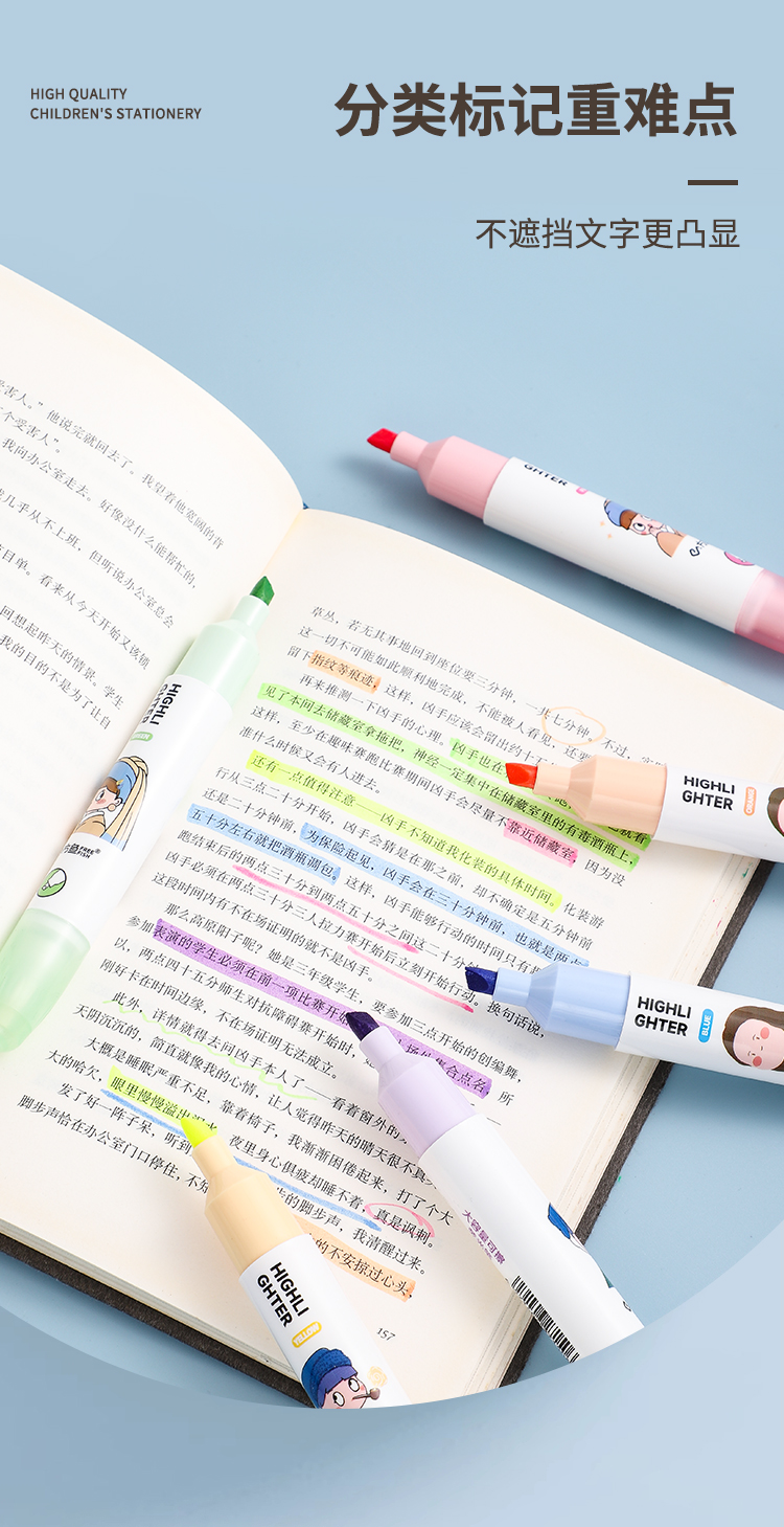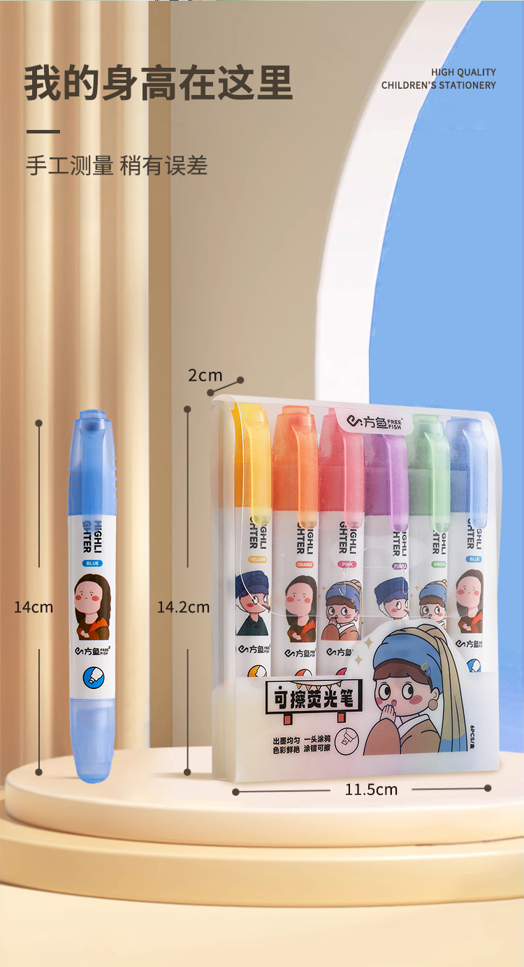 (3秒消色)世界名画可擦荧光笔1盒6支装