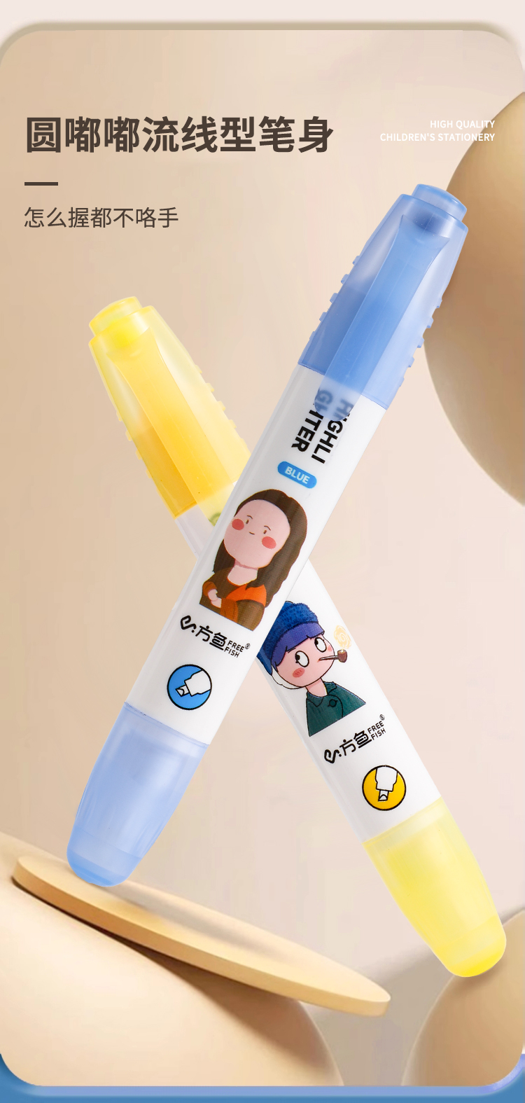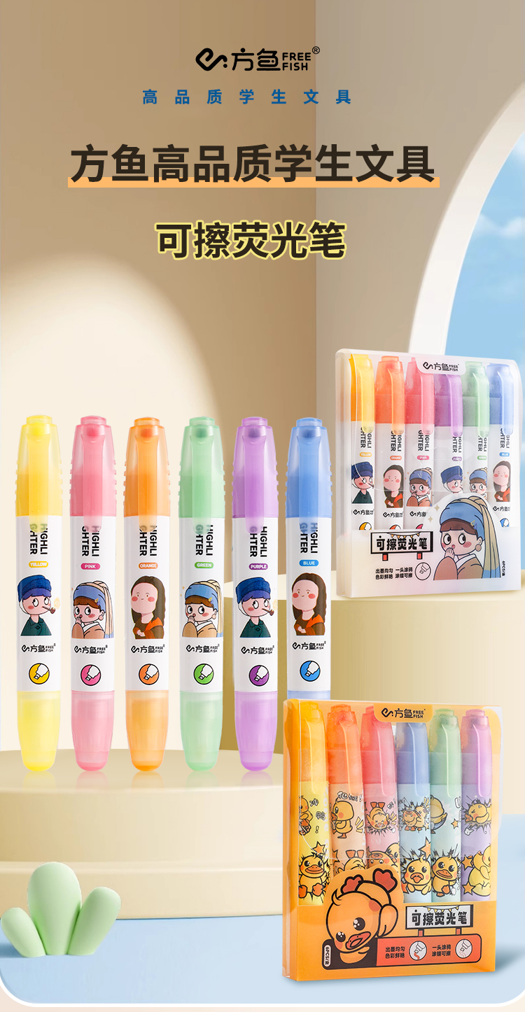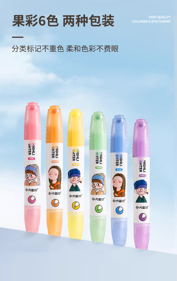 FreeFish/方鱼可擦荧光笔小学生彩色记号笔划重点手账涂鸦笔1盒装