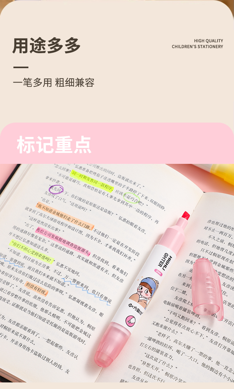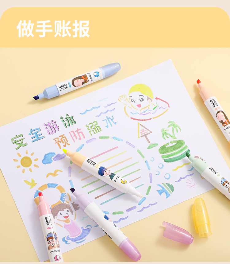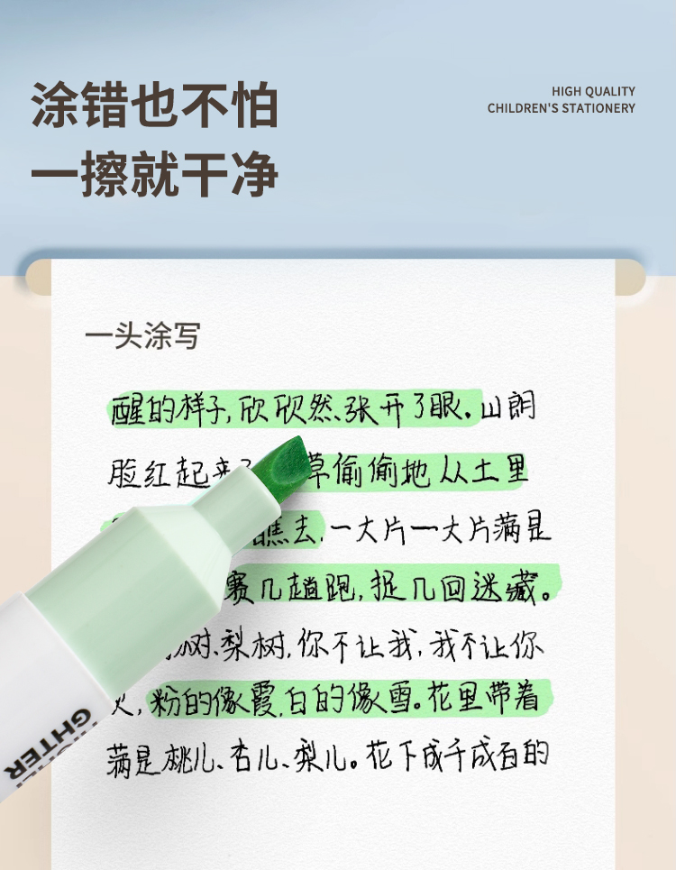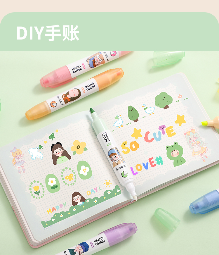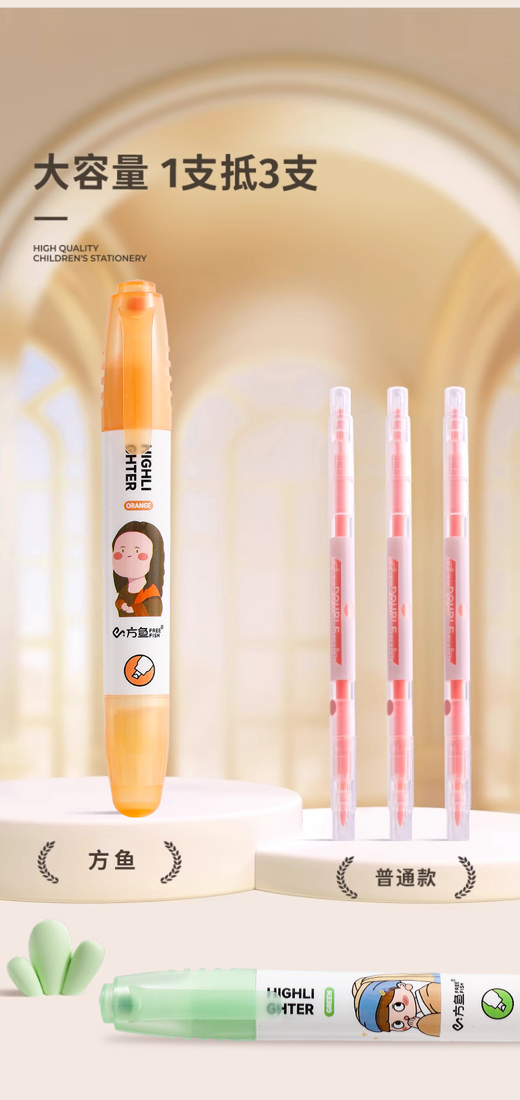 FreeFish/方鱼可擦荧光笔小学生彩色记号笔划重点手账涂鸦笔1盒装
