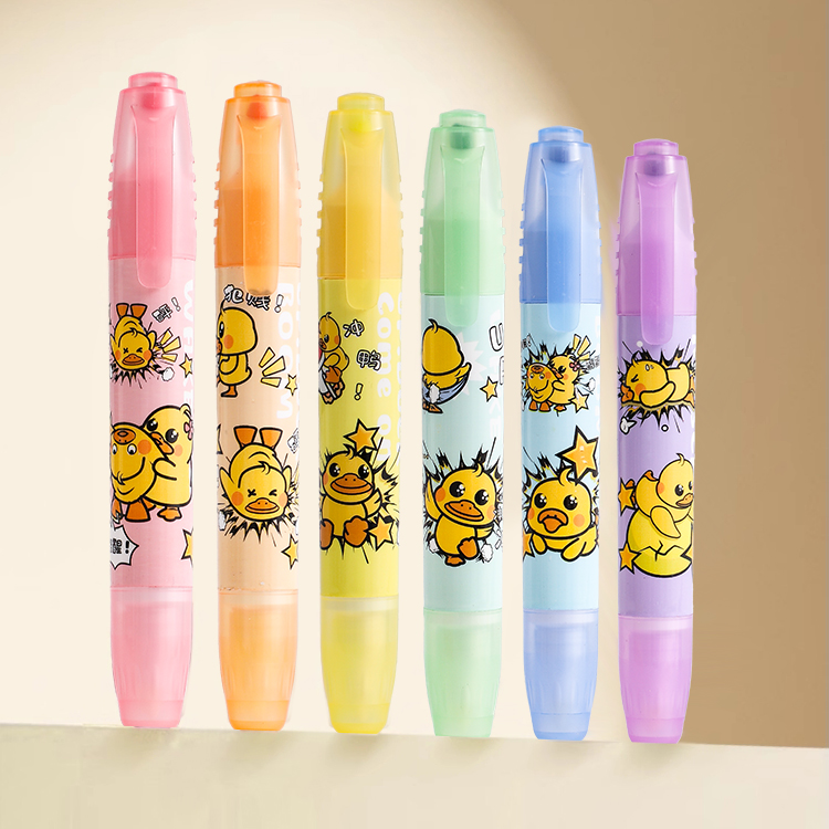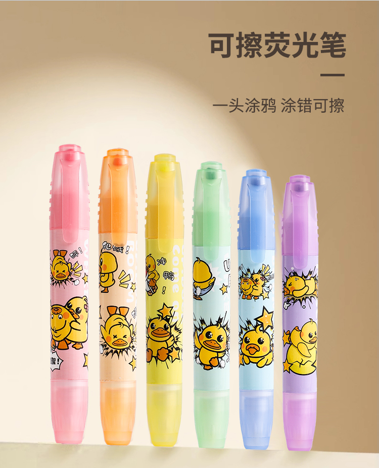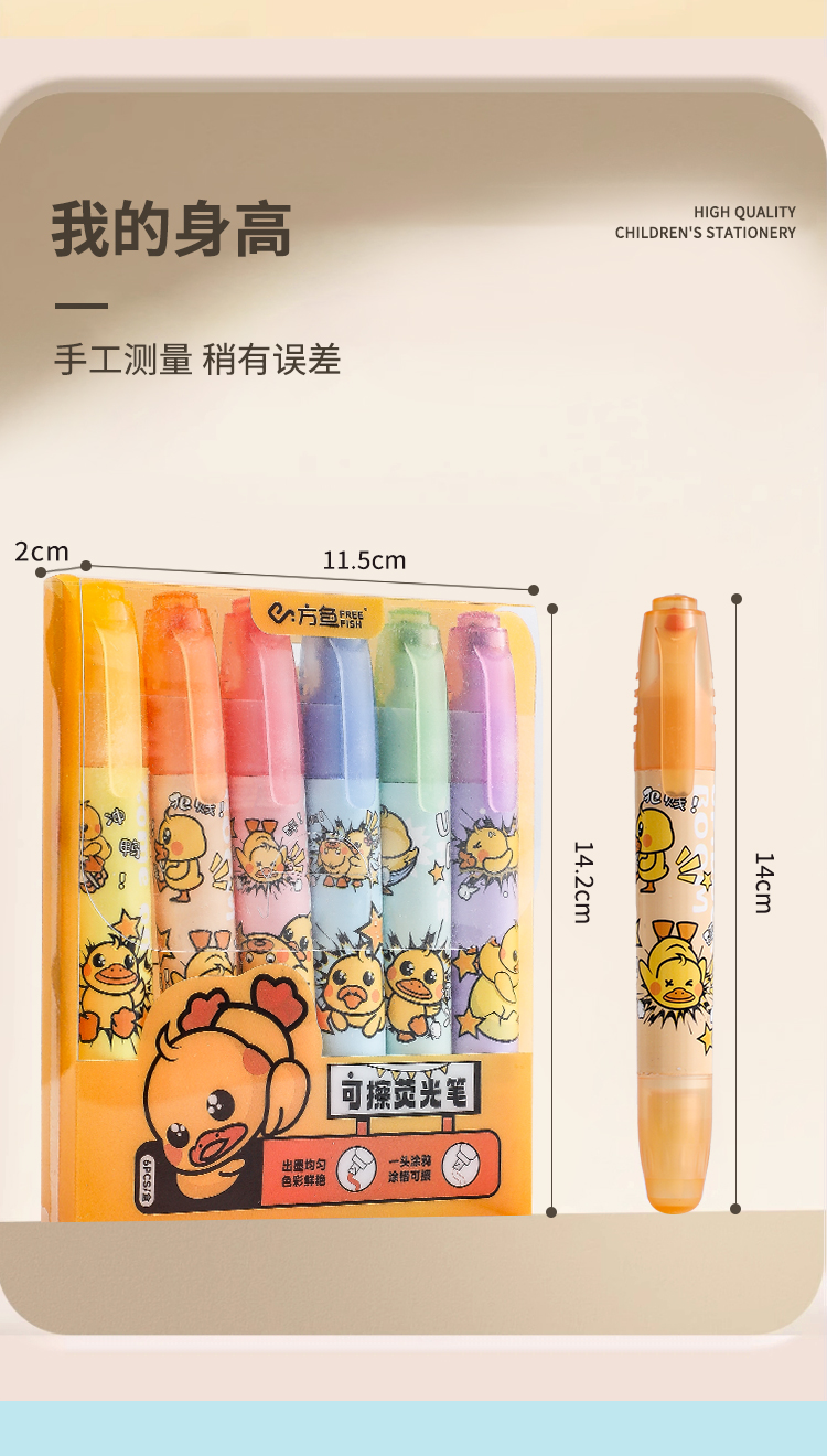 (3秒消色)小黄鸭可擦荧光笔1盒6支装