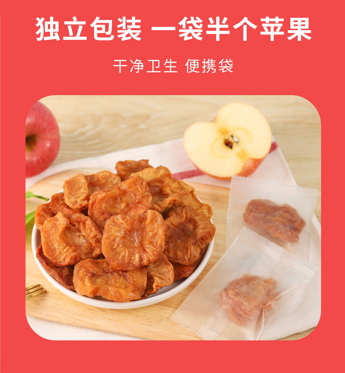 - ¥29.90一块苹果干≈半个苹果,红富士苹果干76g*3袋