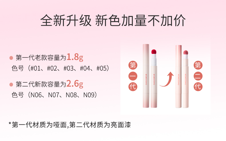 - ¥19.9009#(哑光裸米)嫩粉色,07#(细闪哑光)暖红茶