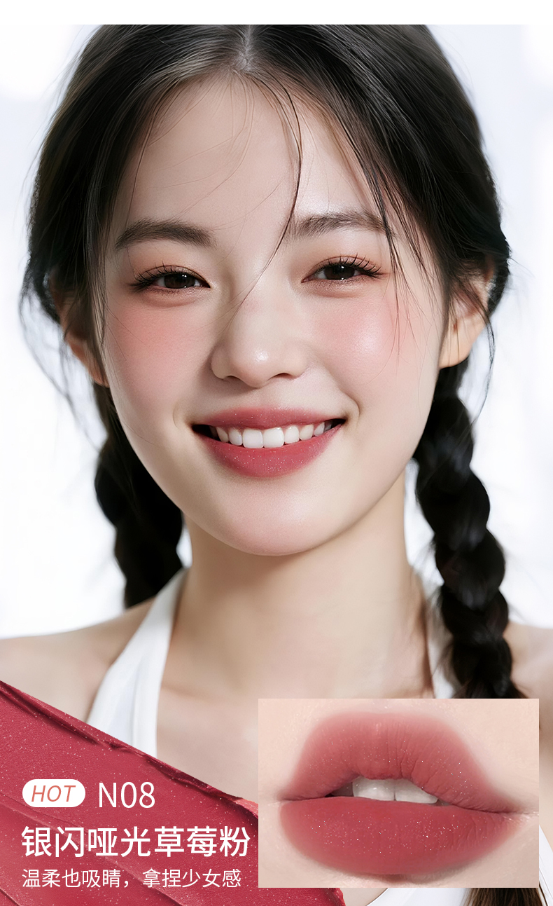 - ¥19.9007#(细闪哑光)暖红茶,08#(银闪哑光)草莓粉